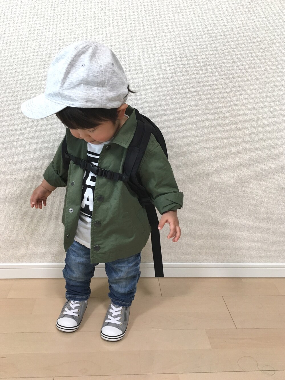 更新してなかったコーデ𖤐 最近リュックが好きで お出かけの時はリュック背負ってる♡ 中にはおやつとウエットティッシュが入ってます( ¨̮ )♡