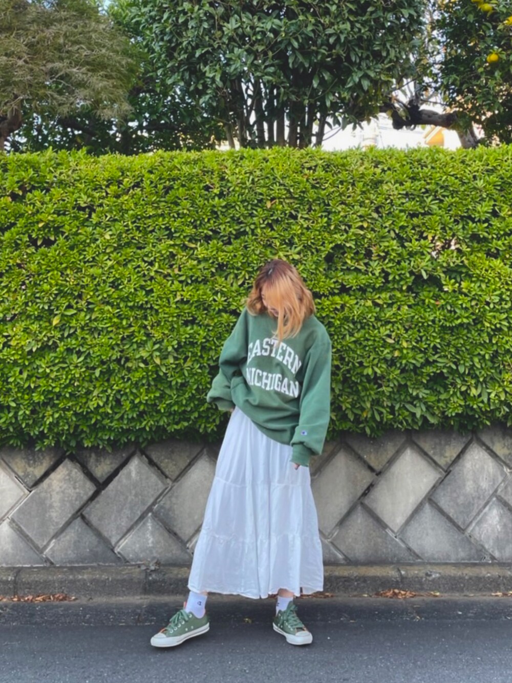 大好きなカーキ✖️ホワイトの合わせ💚🤍 画質が悪いのでそろそろスマホ変えないととおもう毎日🥲