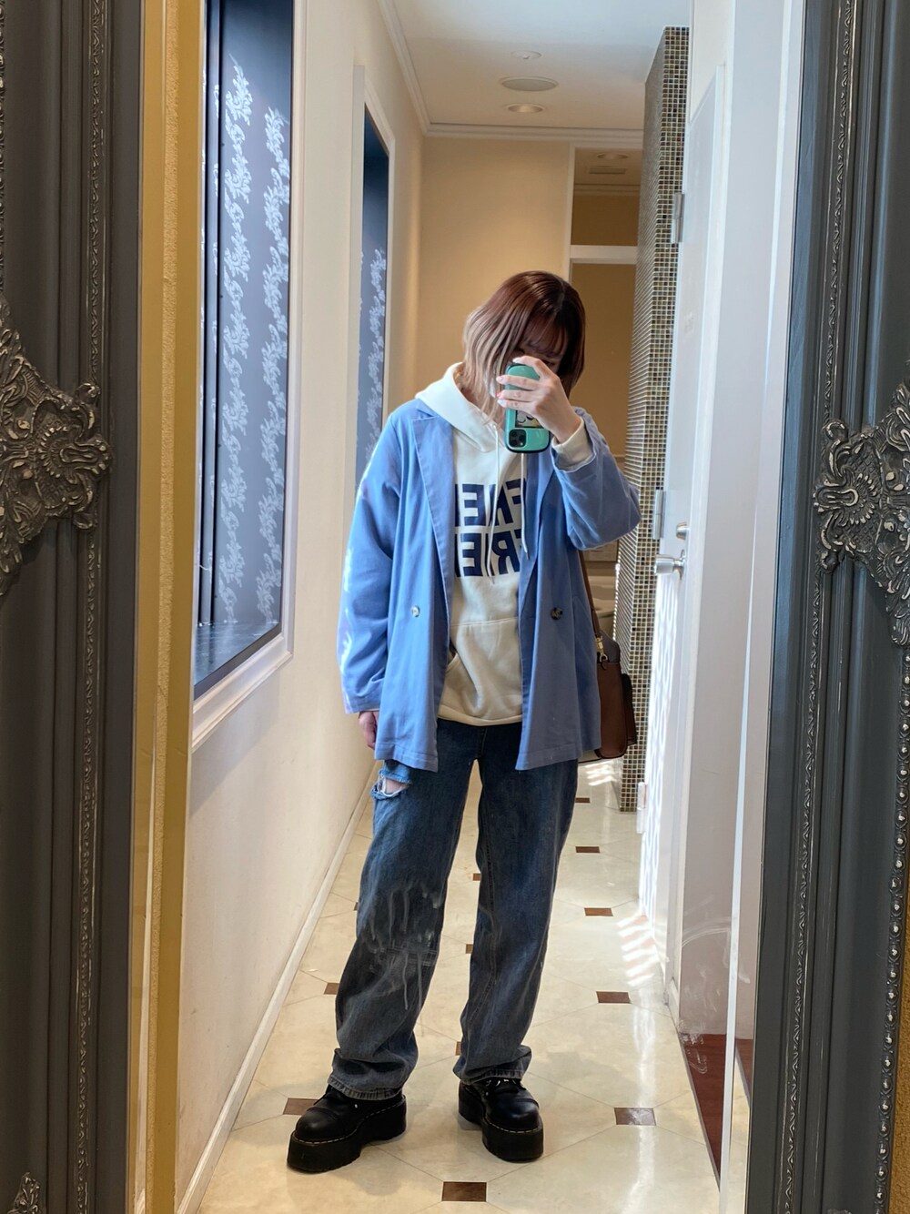 本日の休日コーデ🌸 AIさんのデニム結構前に購入してたけど やっと写真撮れた🤳 このデニムゆったり感も形もすごく可愛い ワンサイズ下にすればよかったかなってちょい思うけどサイコーなのでオススメ🌷 そんでもってやっぱりブルーが🫐いっちゃんすき