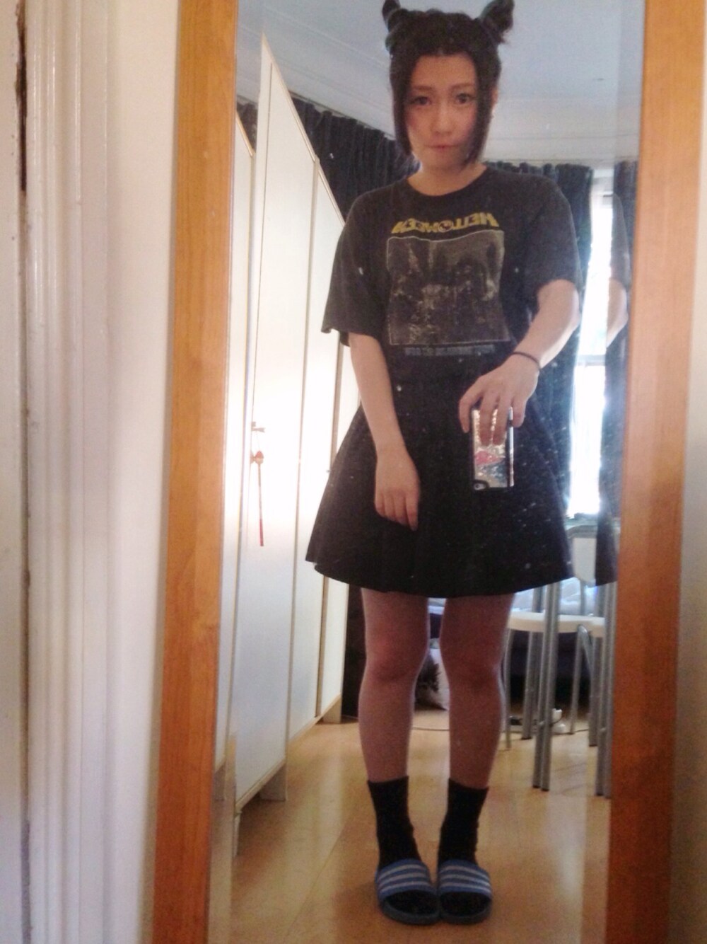 Dyed my hair blond to blue. Tshirt vintage(helloween band t) Skirt cameo