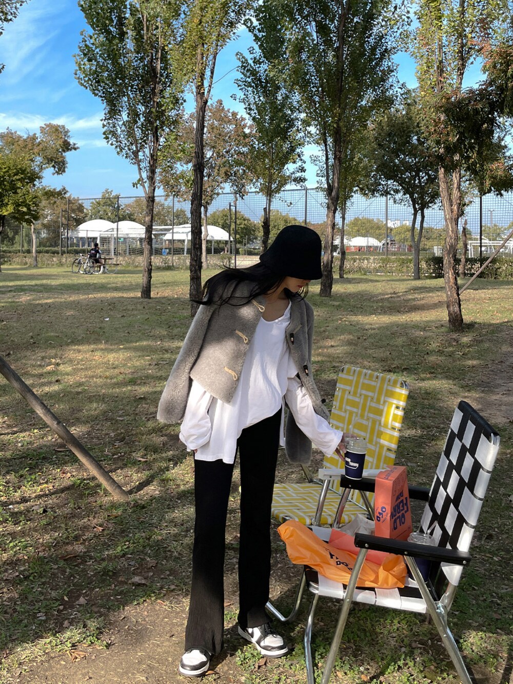今日の新着 トグルボタン付きノーカラーファージャケット X シワ加工ブーツカットパンツ X ウール素材バケットハット X シンプルチェーンネックレス 今HPで5%新着割引中📢 @maybins_japan