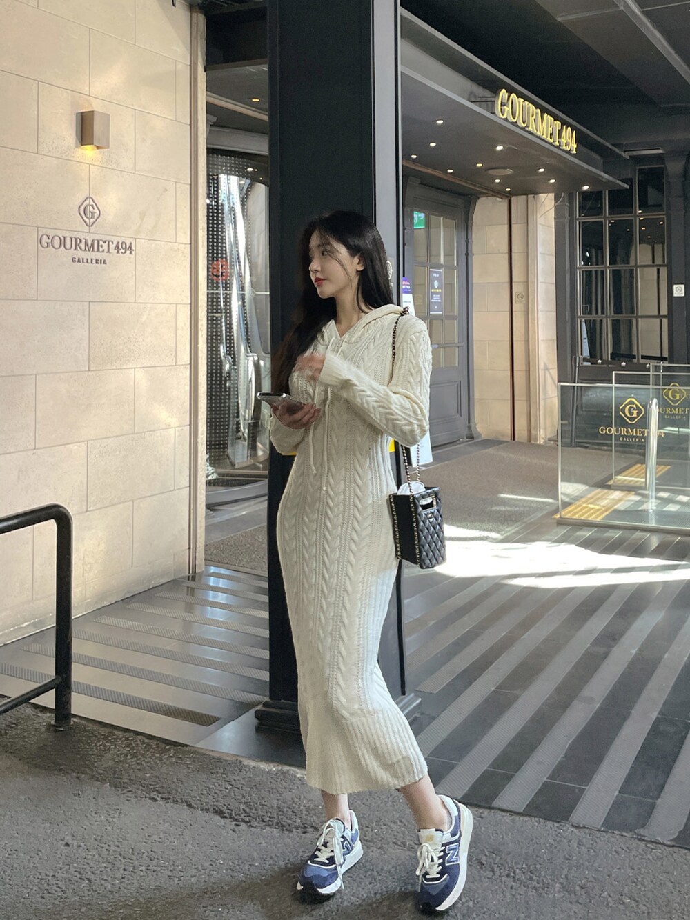 今日の新着 ケーブル編みフード付きニットワンピース 今HPで5%新着割引中📢 @maybins_japan