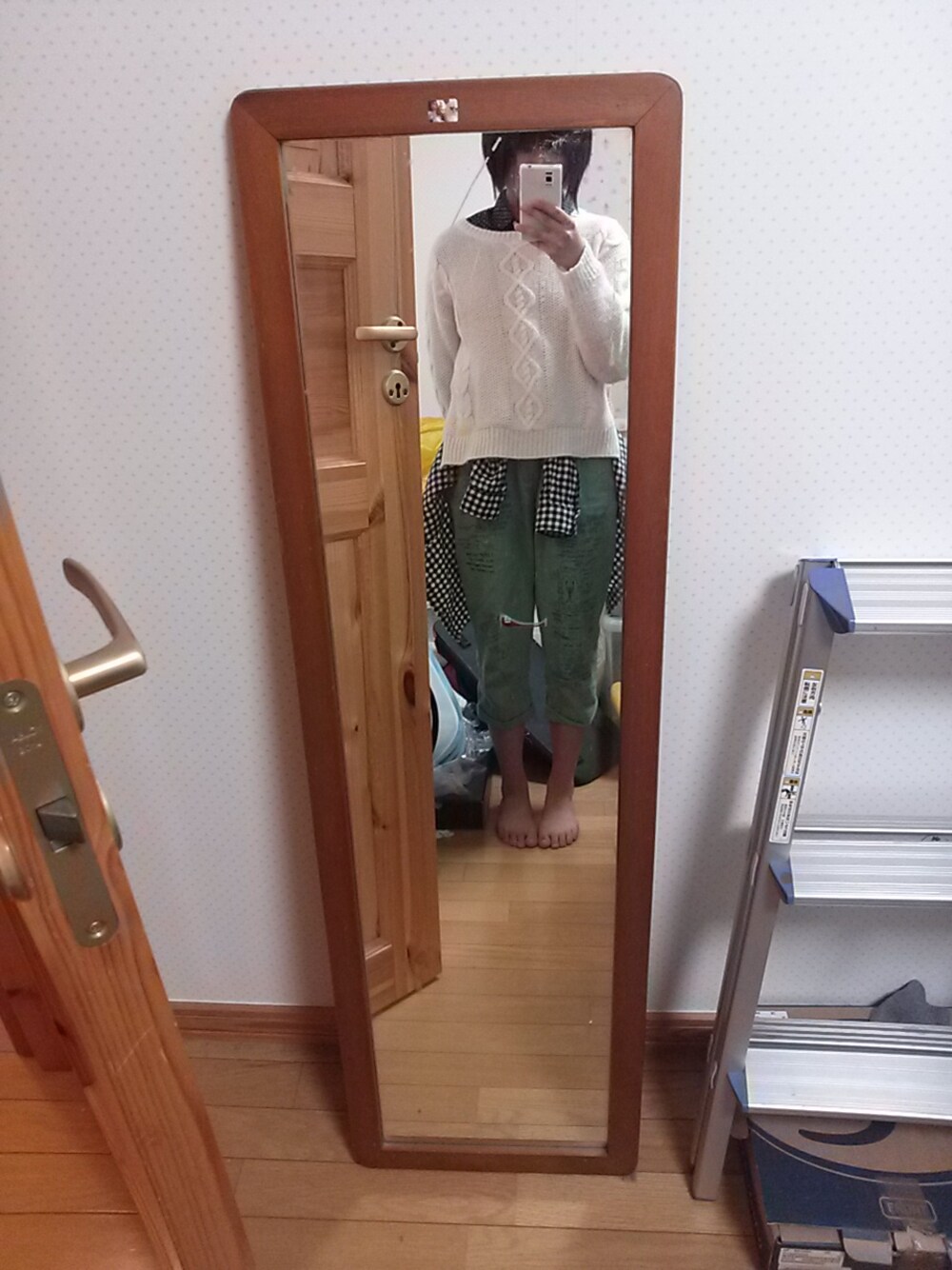 ホワイト系のニット/セーター、グリーン系のその他パンツ、ブラック系のシャツ/ブラウスを着用したレディースの春コーディネートの1枚目の写真