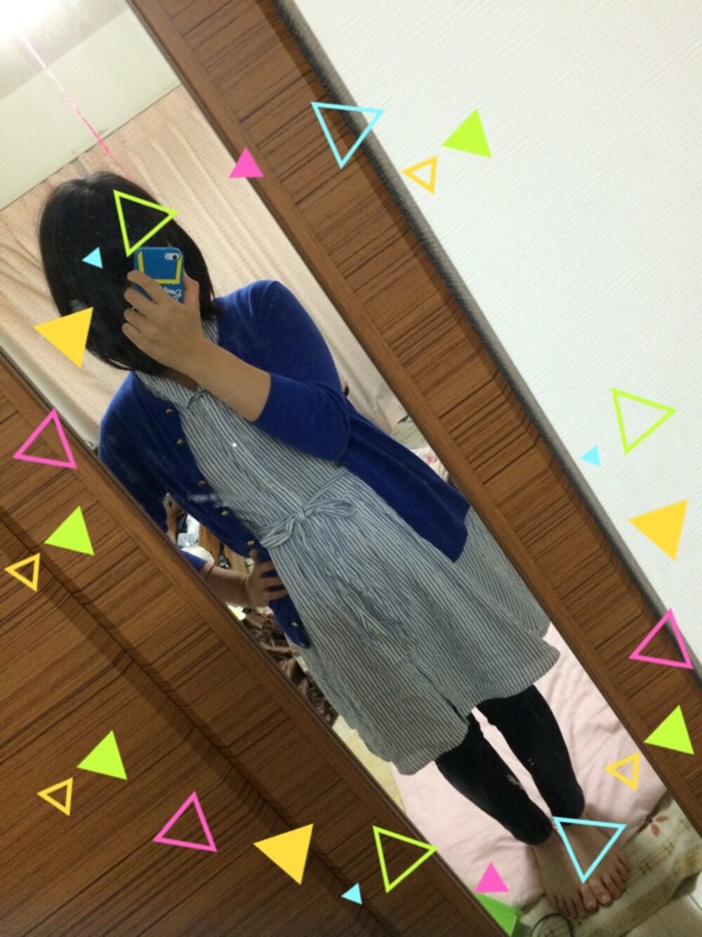 全身を青系でまとめてみました! ワンピースの下にデニムを履くことで、気温が寒くても平気でしたー!