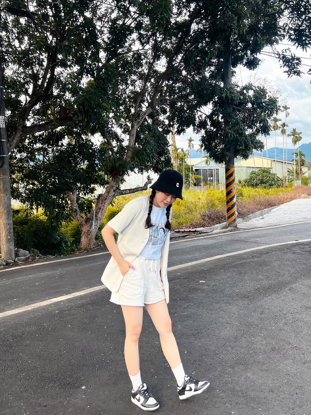 漁夫帽/迪士尼公主T-shirt/短袖西裝外套/休閒運動褲/長襪/運動鞋 Instagram 🔍mayday_12345