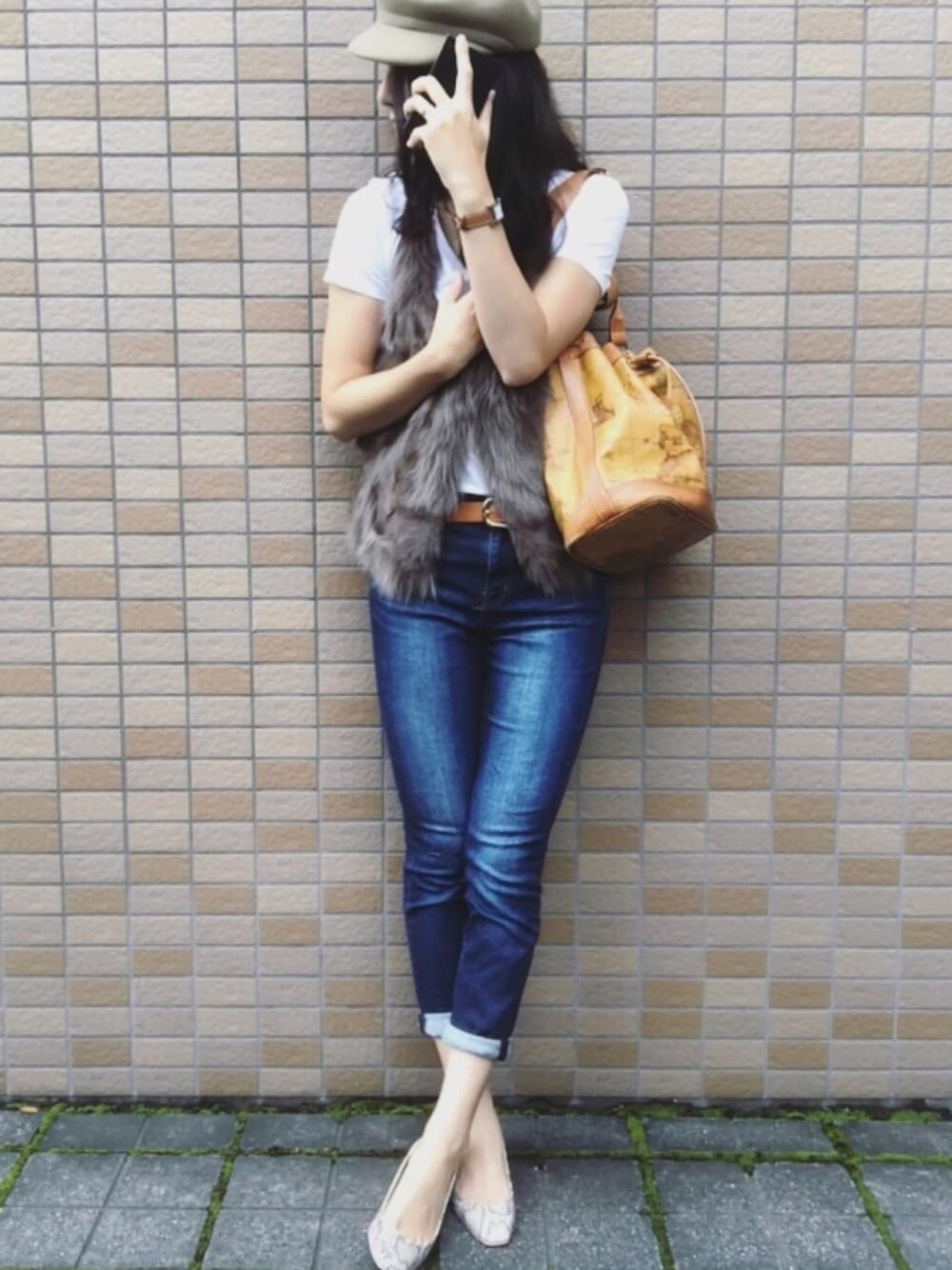 ご覧いただきありがとうございます。 今日はyuriaちゃんの教えてもらった #片手スマホフェス やってみたよ。 こんな感じでいいのかな^ - ^? 大好きなファーベスト、この時期ならではのTシャツ合わせで「暑いのか寒いのか?コーデ」(笑)