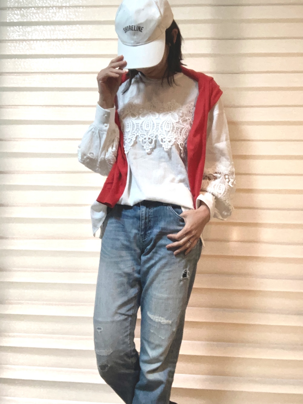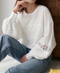 Discoatのレースブラウス 一枚で一気に春♡ さらりとした着心地と アクセントになる大ぶりのレースが とにかく可愛い♡ カジュアルに着たい気分♡