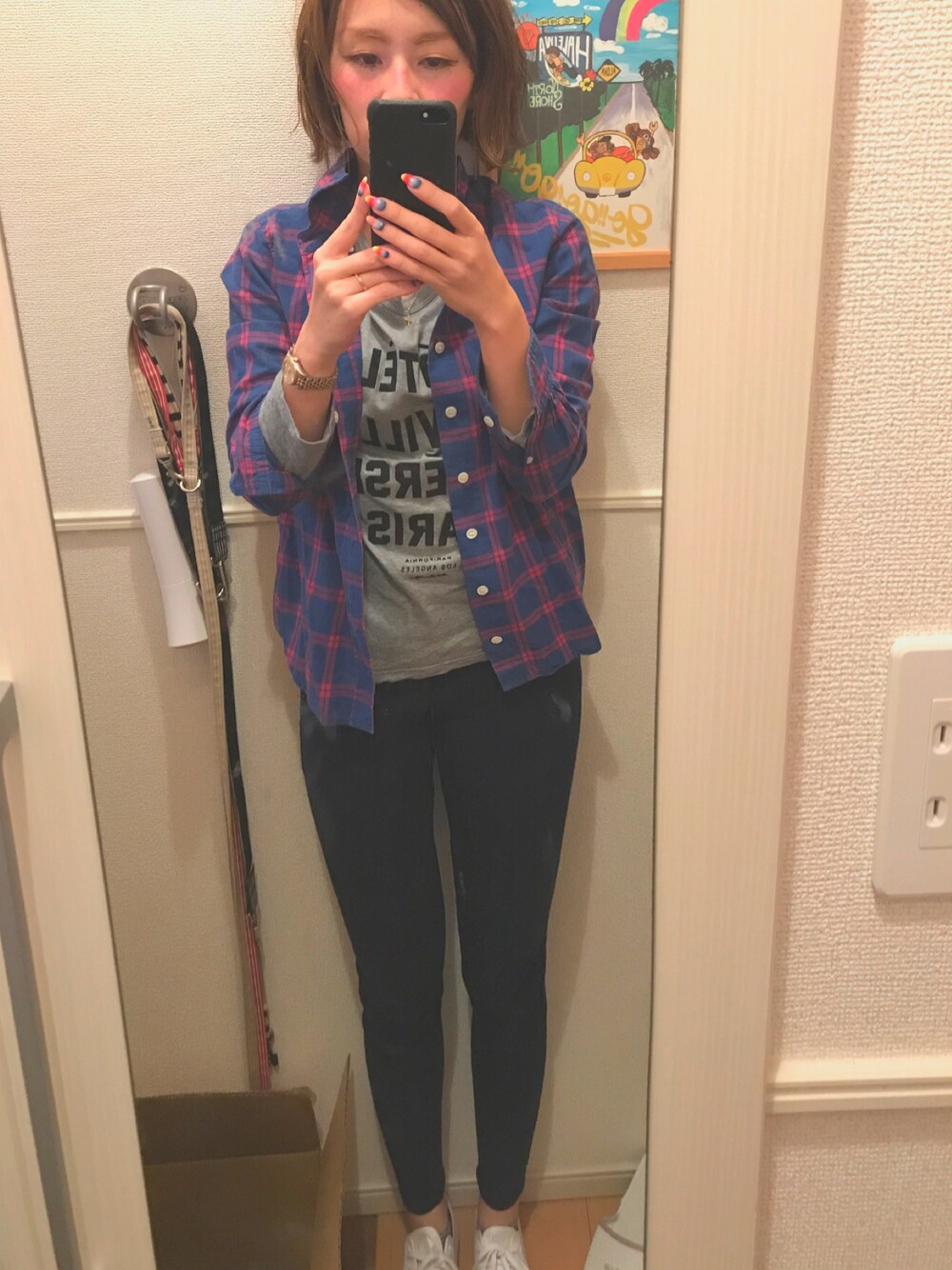 犬の病院に行く適当コーデです。 ちょっと肌寒かったのでロンTとシャツで!