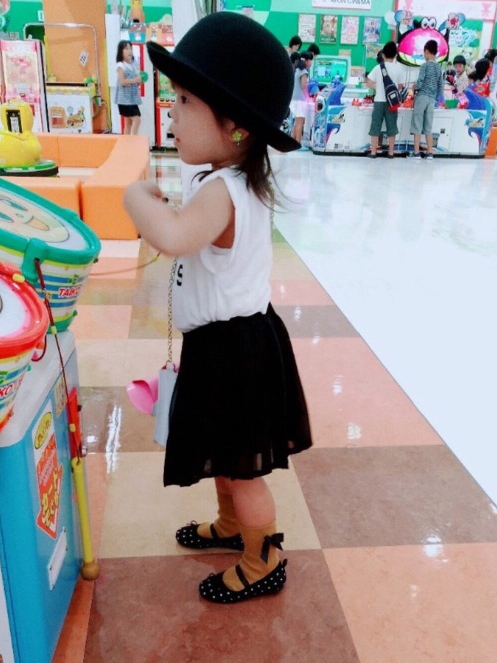 ハットは去年買って一回も使わなかったレディースサイズ🎩グローバルワークのスカパン本当使える!からし色とドットが気になるこの頃。