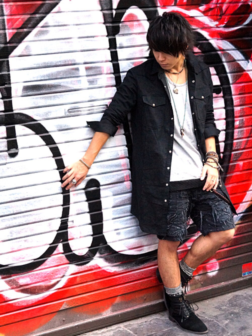 流行カラーのブラックで構築したBONDS&PEACE流ブラックコーデ。トップスがロングシャツなので冬っぽくなりすぎないようにインナーをグレー、そしてパンツはショーツを選択。秋の季節にもってこいのスタイリング。