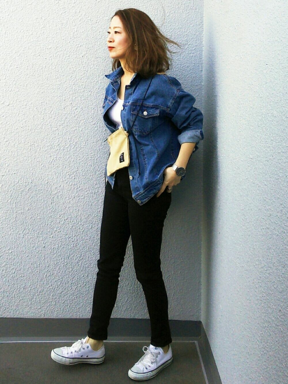 NICOのデニムパンツ「ハイウエストスキニーデニム」を使ったコーディネート