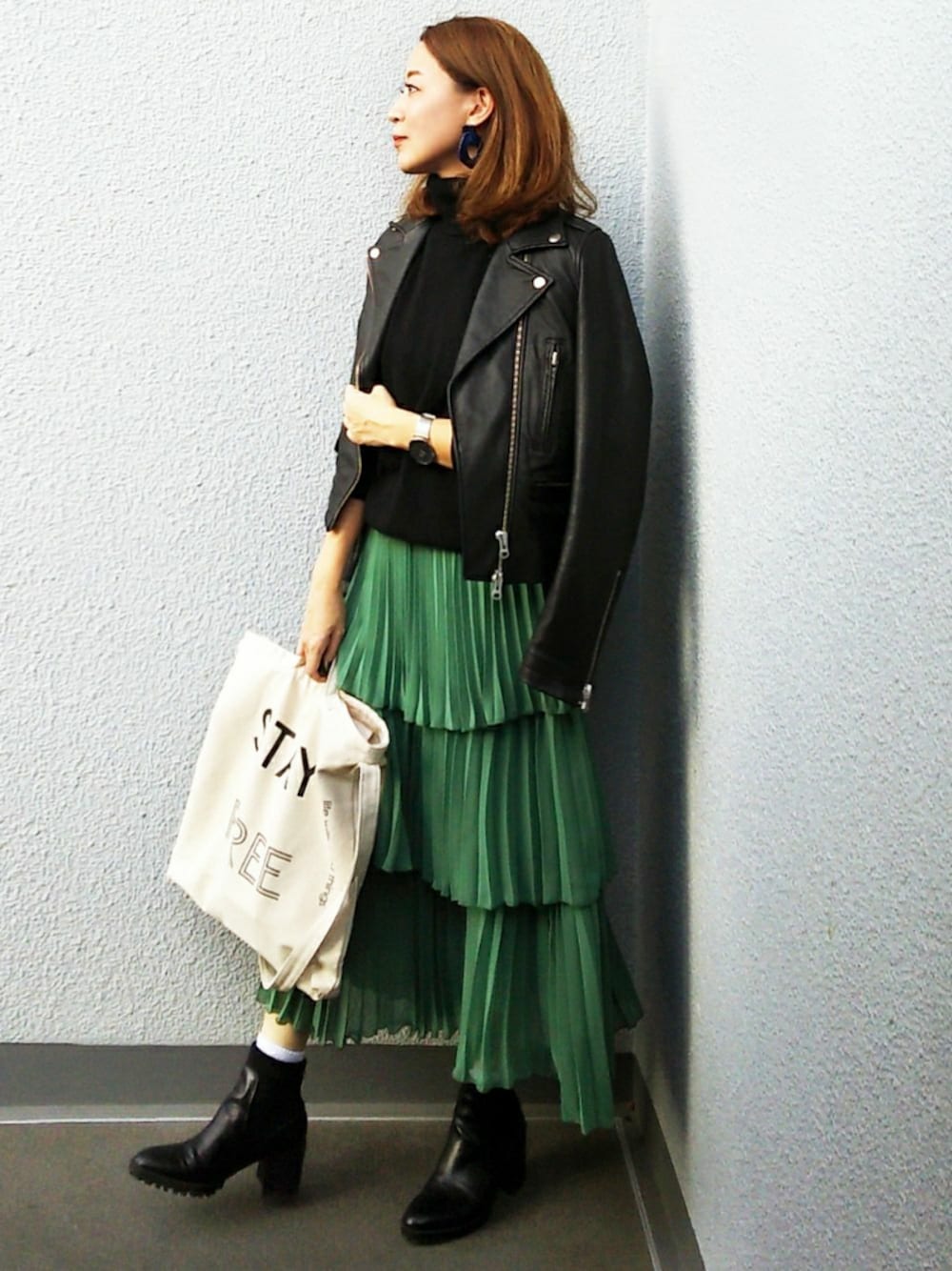 NICOのライダースジャケット「レザーライダースジャケット」を使ったコーディネート