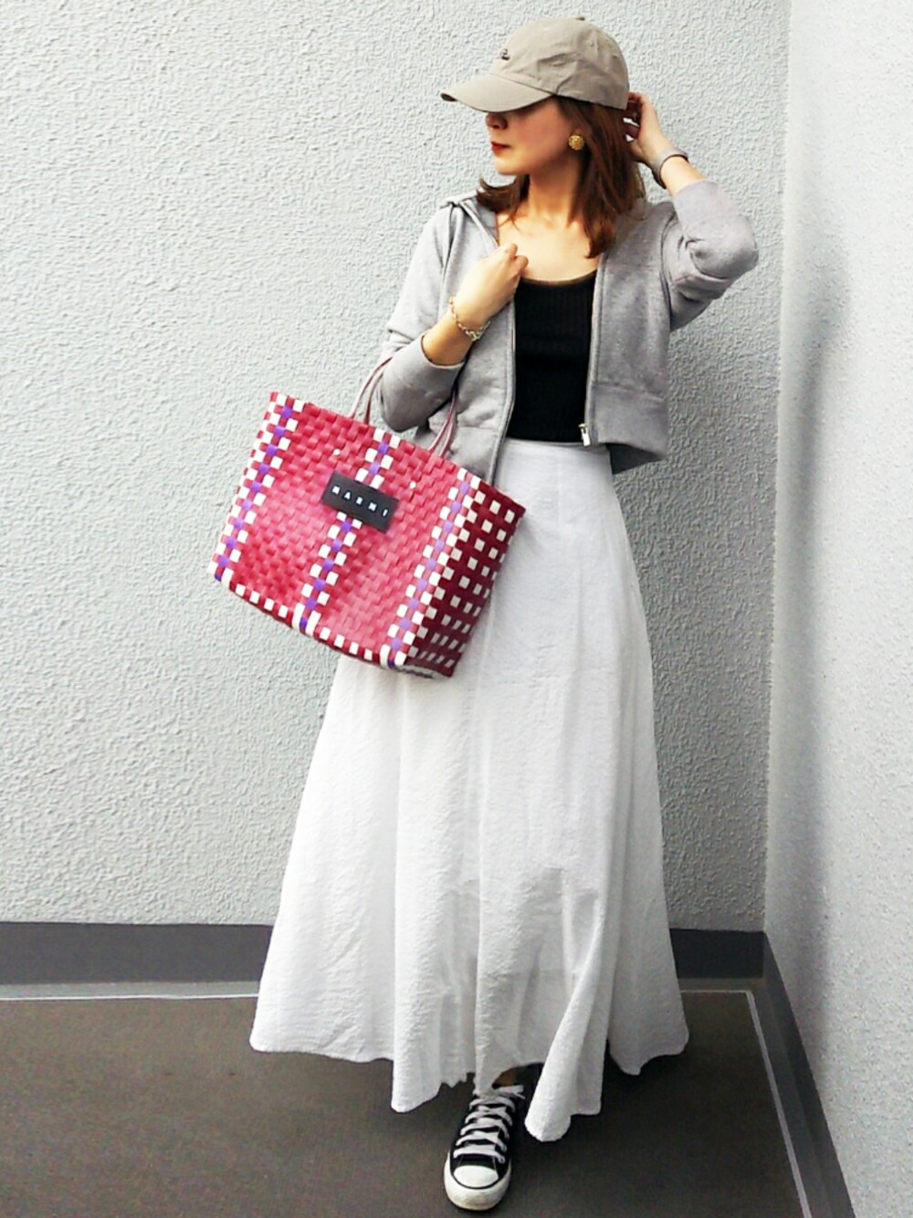 NICOのキャップ「Studio刺繍ローCAP 14+オリジナル ローキャップ レディース 帽子 BIG キャップ」を使ったコーディネート