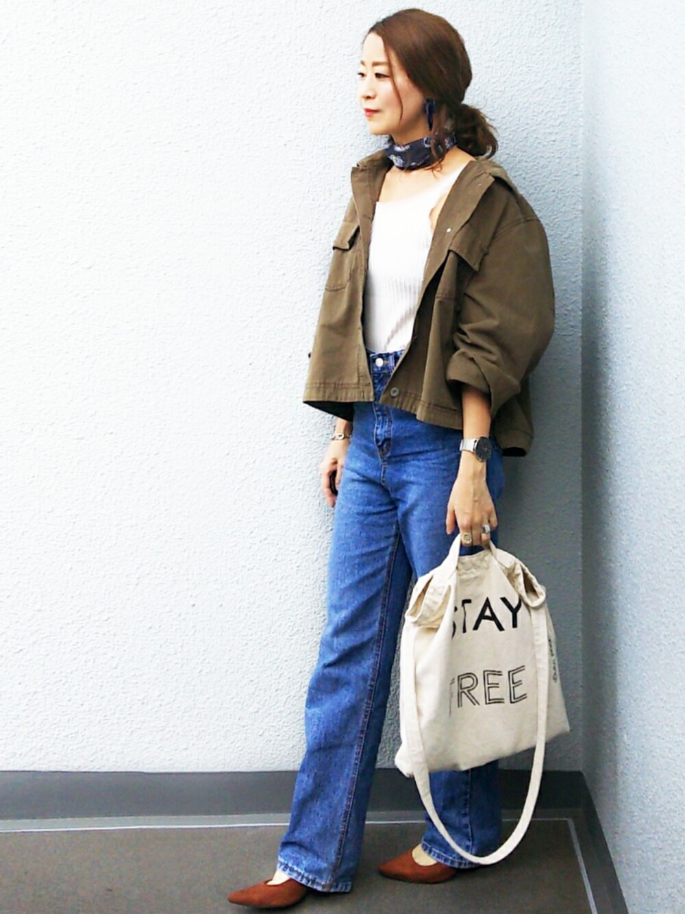 NICOのデニムパンツ「ハイウエストテーパードデニムパンツ」を使ったコーディネート