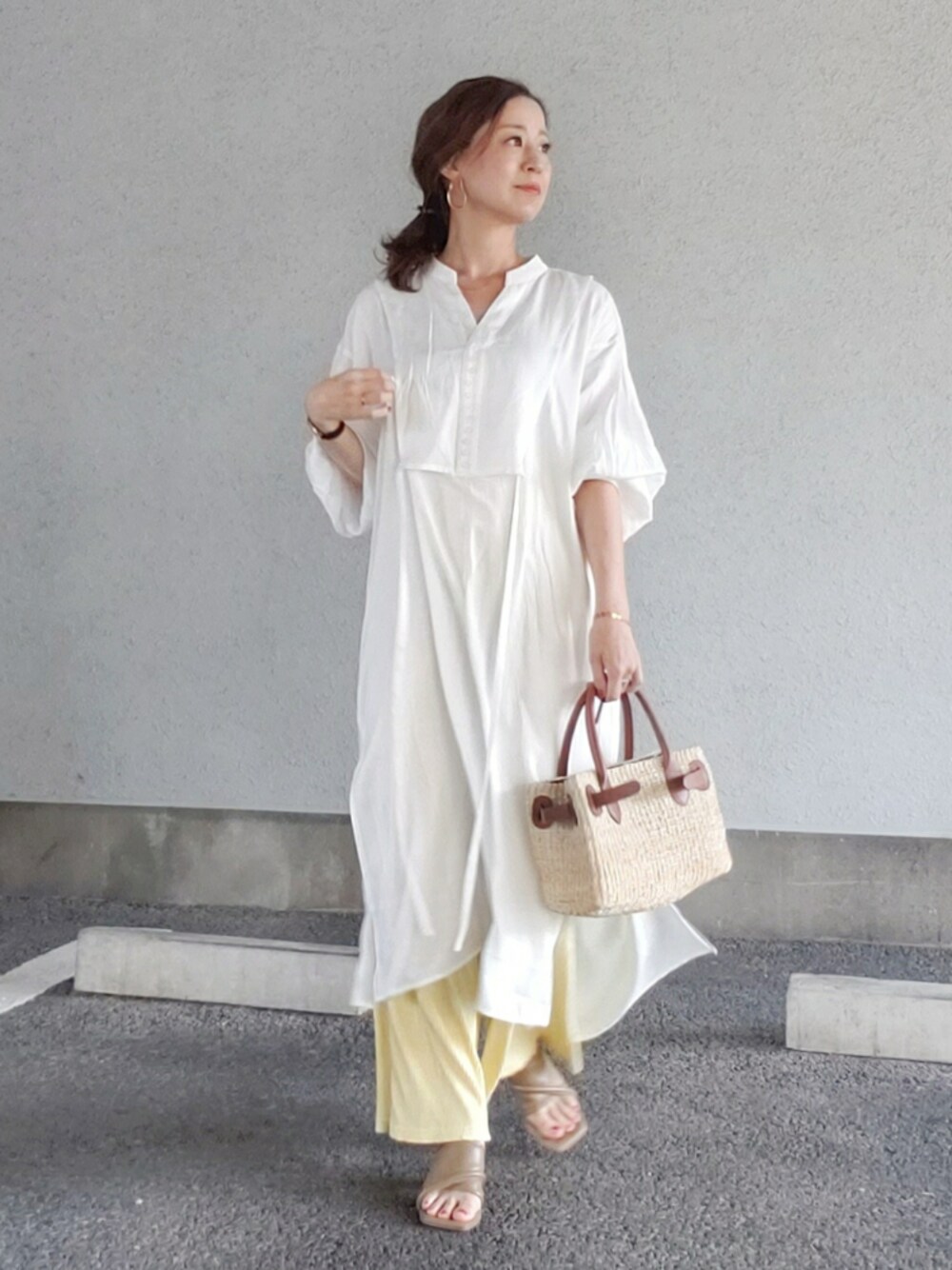 NICOのシャツワンピース「CORNERS by KR ヴィンテージサテンカフタンシャツワンピース」を使ったコーディネート