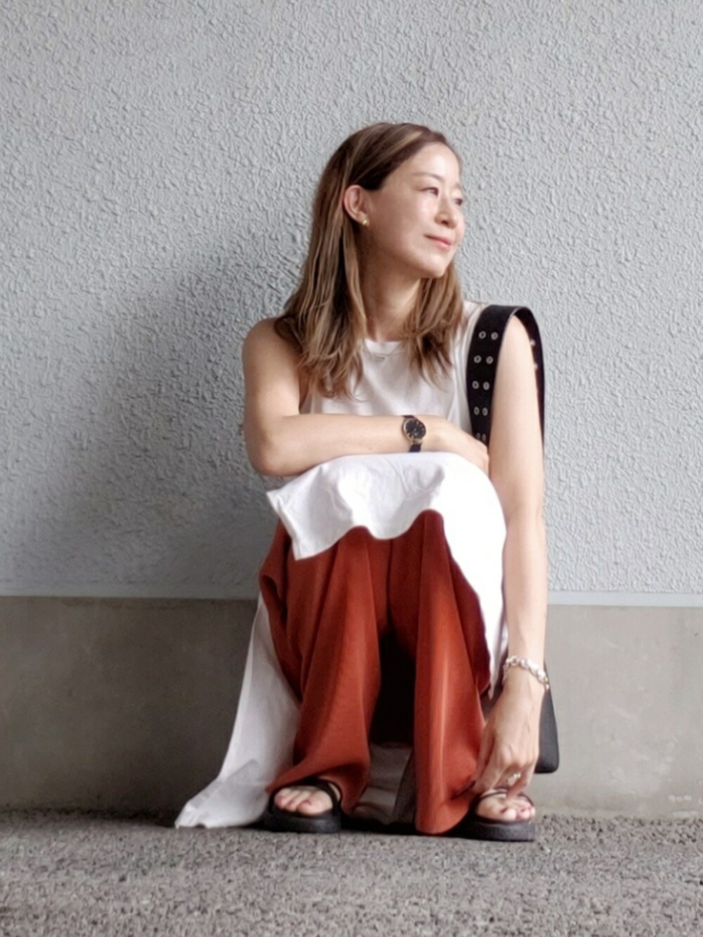 NICOのその他パンツ「via j(ヴィアジェイ) 無地プリーツパンツ」を使ったコーディネート