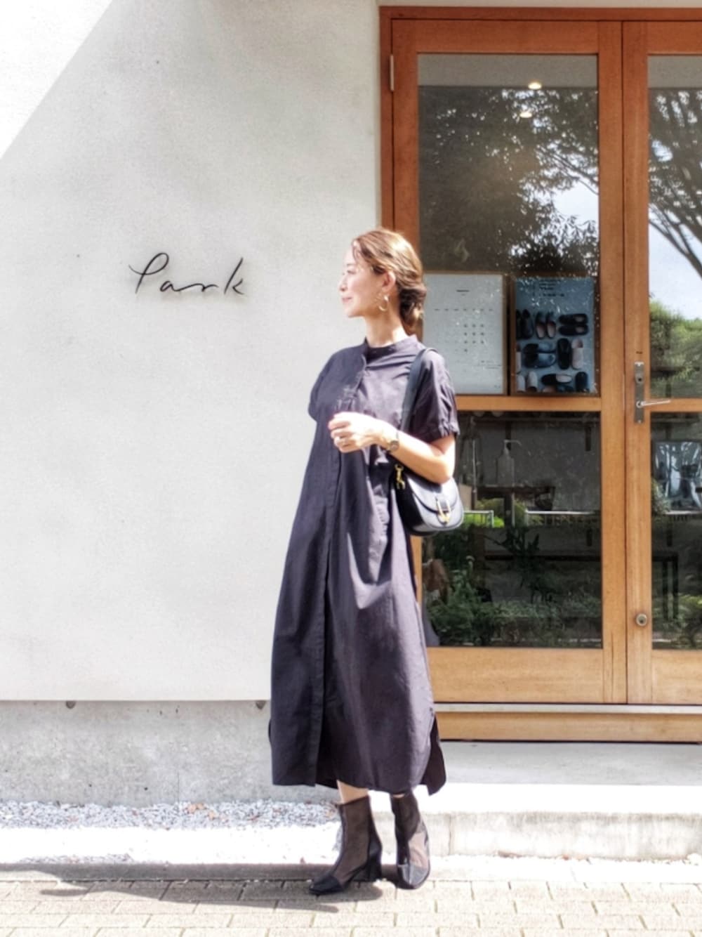 NICOのワンピース「バックシャンフリル 比翼 ショートスリーブ ロング ワンピース」を使ったコーディネート