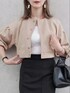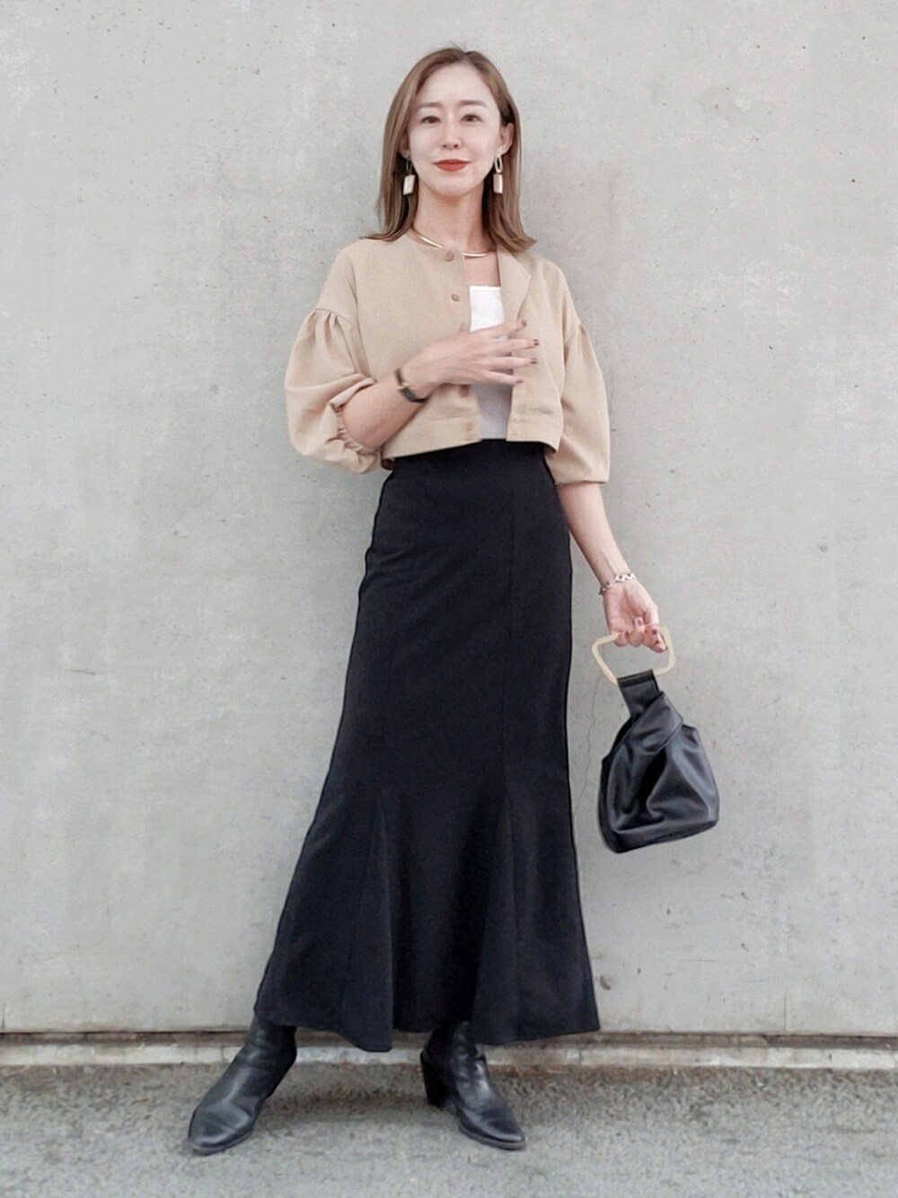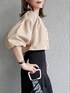 今日はECRIREのブラウスのご紹介です☺️ 今回、私が着用しているのはベージュのMサイズです。今年らしいショート丈とボリューム袖がとっても可愛く、ブラウスとしてはもちろん、羽織りにも活用できそう🥺🌸 この日は、面談に。キレイ目にも合わせやすかったです😃