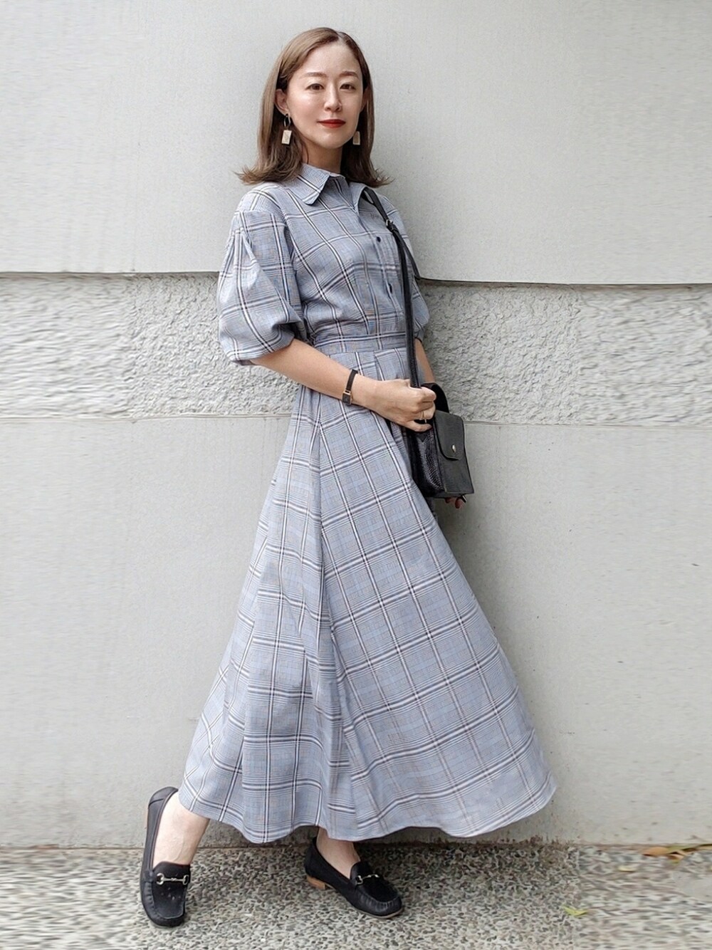 今日はNARACAMICIEさんのシャツワンピースのご紹介です🥺🌸 キチンと感のあるこちらのワンピース、オフィスや保護者会などにオススメ🥺💕 こちらは チェックワンピース/ブルー 身 長……………158cm サイズ……………S~M程度 年 齢……………42