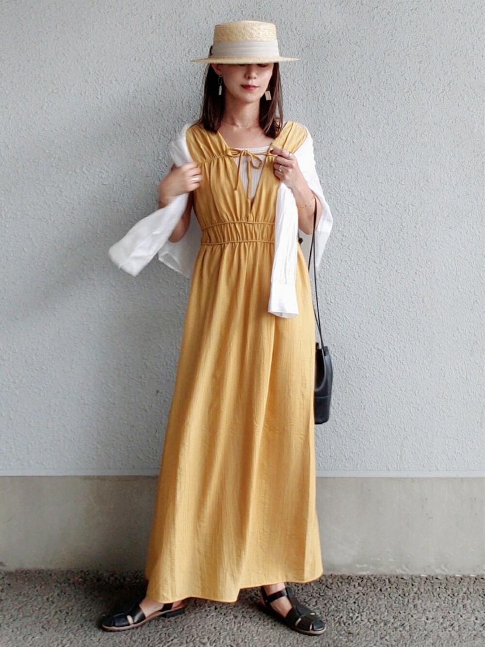 NICOのワンピース「ギャザーロングワンピース」を使ったコーディネート