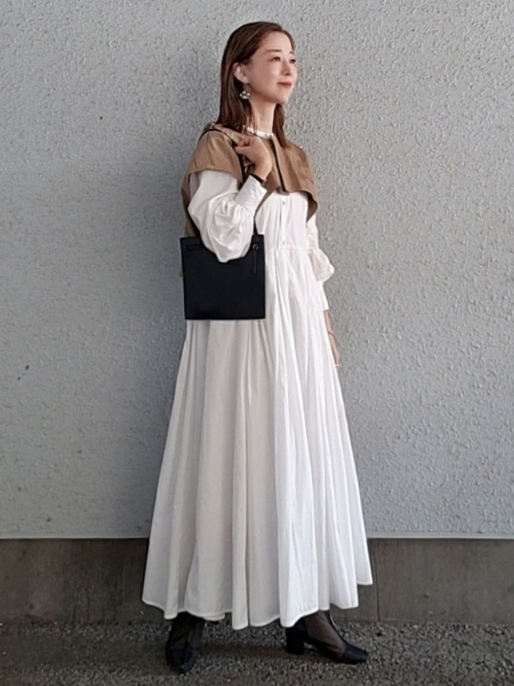 NICOのシャツワンピース「【yun_wearコラボ】ボリュームスリーブサーキュラーフレアロング丈ワンピース」を使ったコーディネート