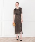 NICOのドレス「【LEJA】袖透け感花柄レース配色パイピングスリットロングドレスワンピース美脚効果結婚式 パーティードレス 20代 30代」を使ったコーディネート