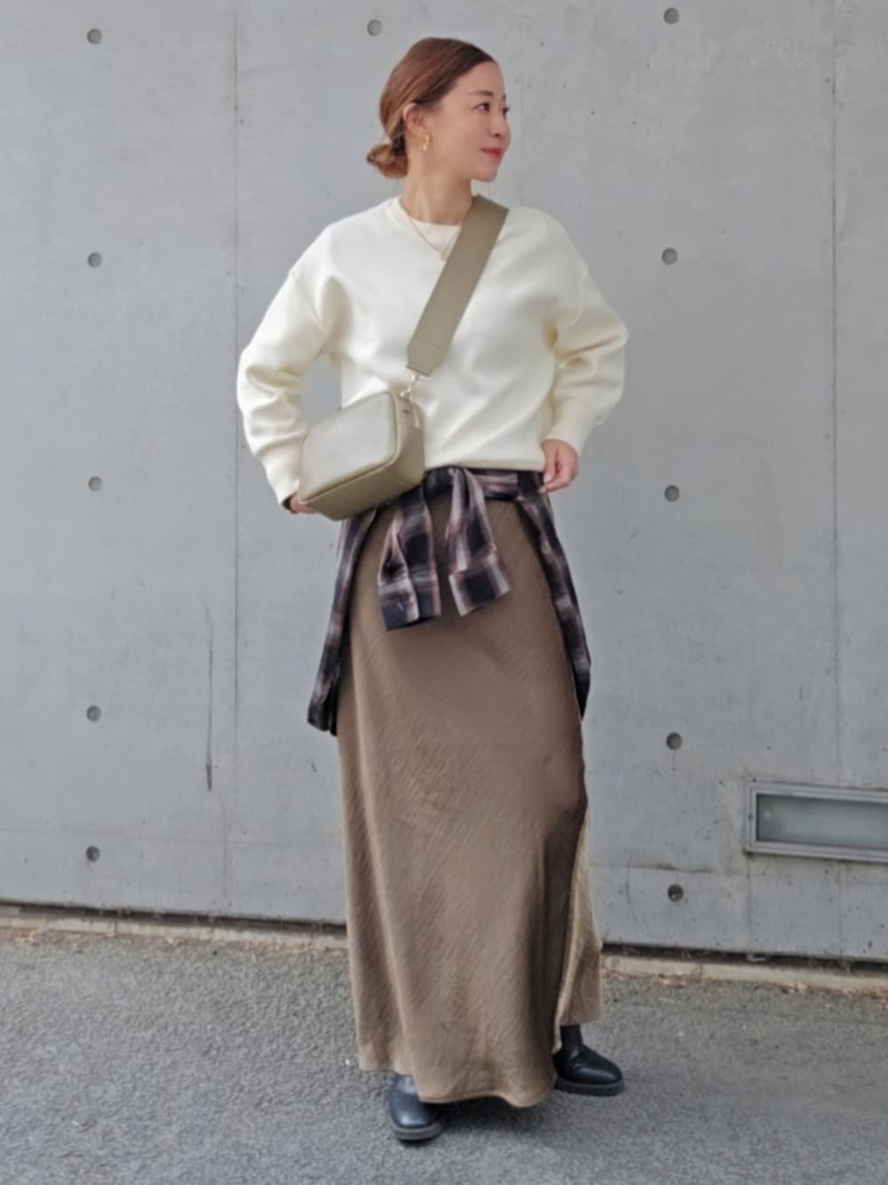 NICOのスカート「【-3kg見え/14色展開】スタイルアップサテンスカート」を使ったコーディネート