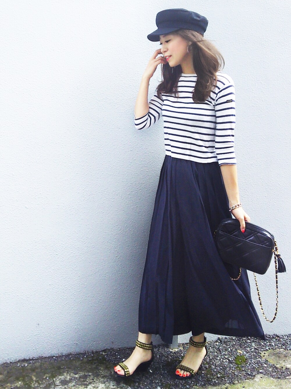 こんばんは。 少し忙しくしていたのですが、先日のゲリラ豪雨の日、夜中にびしょびしょで帰宅したら、リビングが浸水しているという大惨事に見舞われました。涙 マンションの5階に住んでいるので、まさかこんなことになるとは思いもしなかったのですが。 ベランダに雨が吹き込んで、排水溝の処理速度を雨量が上回る→ベランダがプールになる→ガラス戸の下から水がリビングに流れ込む→私が夜中に大掃除をするはめになる。という図式です。 やっとラグも渇き、部屋にいられる感じになりました。。 ベッドルームじゃなくて本当によかったです。 えーと。 コーデはマリンっぽくしてみました。