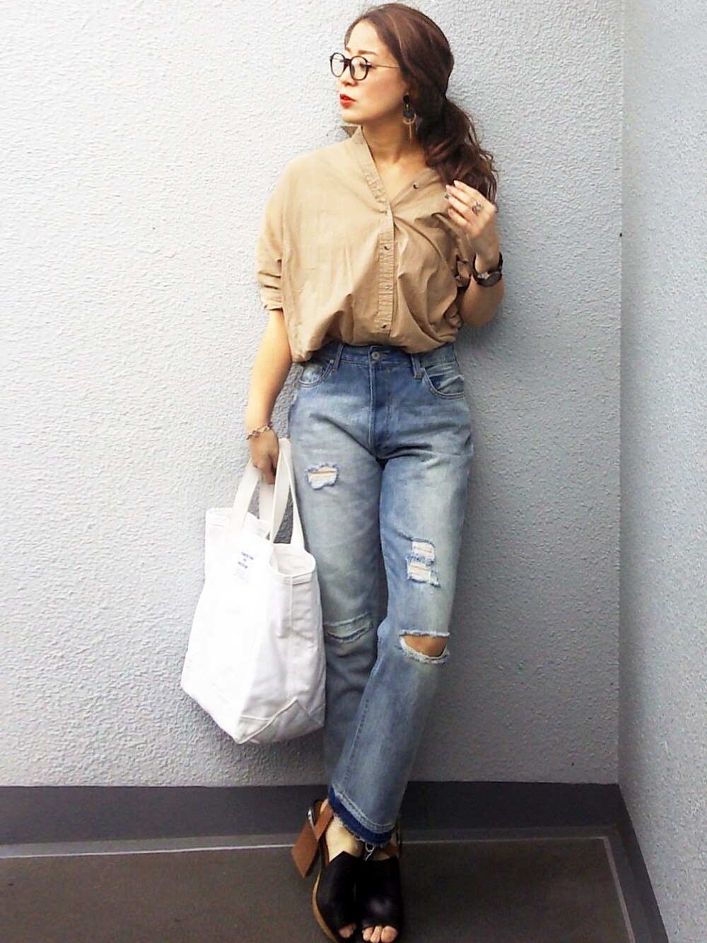 おはようございます。 今日もガチ眼鏡、引き続きです。 DRWCYSのダメージ具合が可愛いデニムをメインにしてみました。 ストレートはあんまり履いたことがなくバランスとりにくいかなって思ってたけど、履きやすかったです。 デニムって1本1本雰囲気違うからどんどん欲しくなってどんどん増えちゃいますね。。( ;∀;)靴がお気に入りです💛 それから余談ですが、たまにご質問いただく髪、少しメッシュが入っています。 実は、、白髪が最近増えまして。でも、白髪染めが嫌だったからメッシュでカモフラです←😨(笑) あと、パーマではなく毛先だけ少しうねる天パです。巻いているときもありますが、湿度でけっこう出方が変わります。 今日もいい天気☀ お休み、ゆっくりしましょうね~