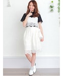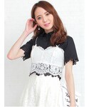 レースのセットアップ💕 ネイビーのオフショルのトップスと合わせました😊