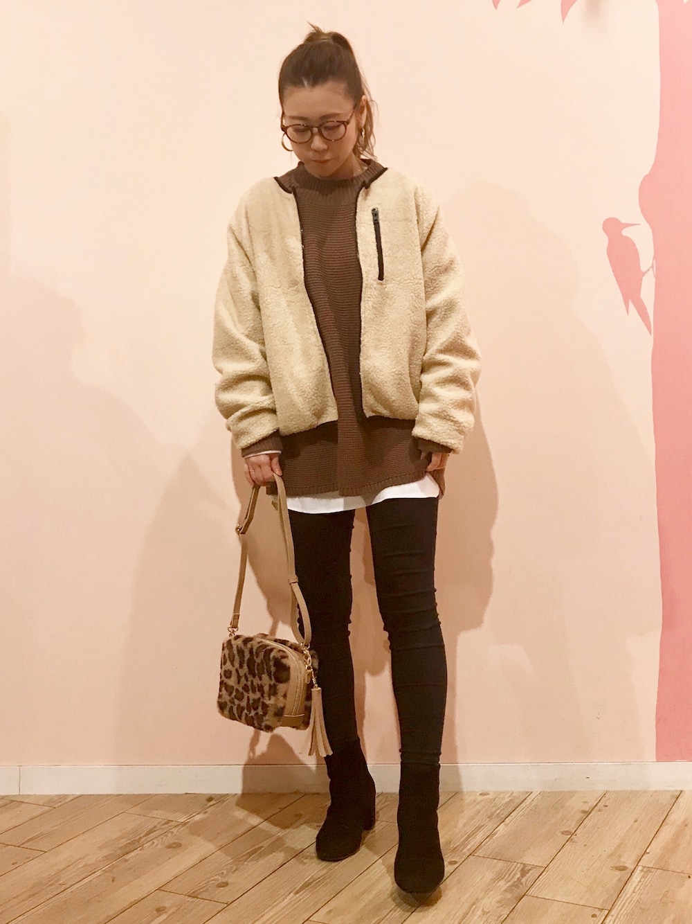 マニョ(ドリームタウンアリー シューラルー)のブルゾン「【M-L】胸ポケ付ボアブルゾン」を使ったコーディネート