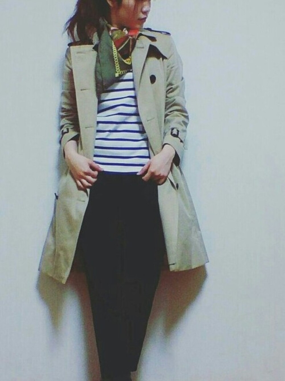 トレンチコートのみで春をのりきろうとしています。 ボーダー×トレンチ大好き!!