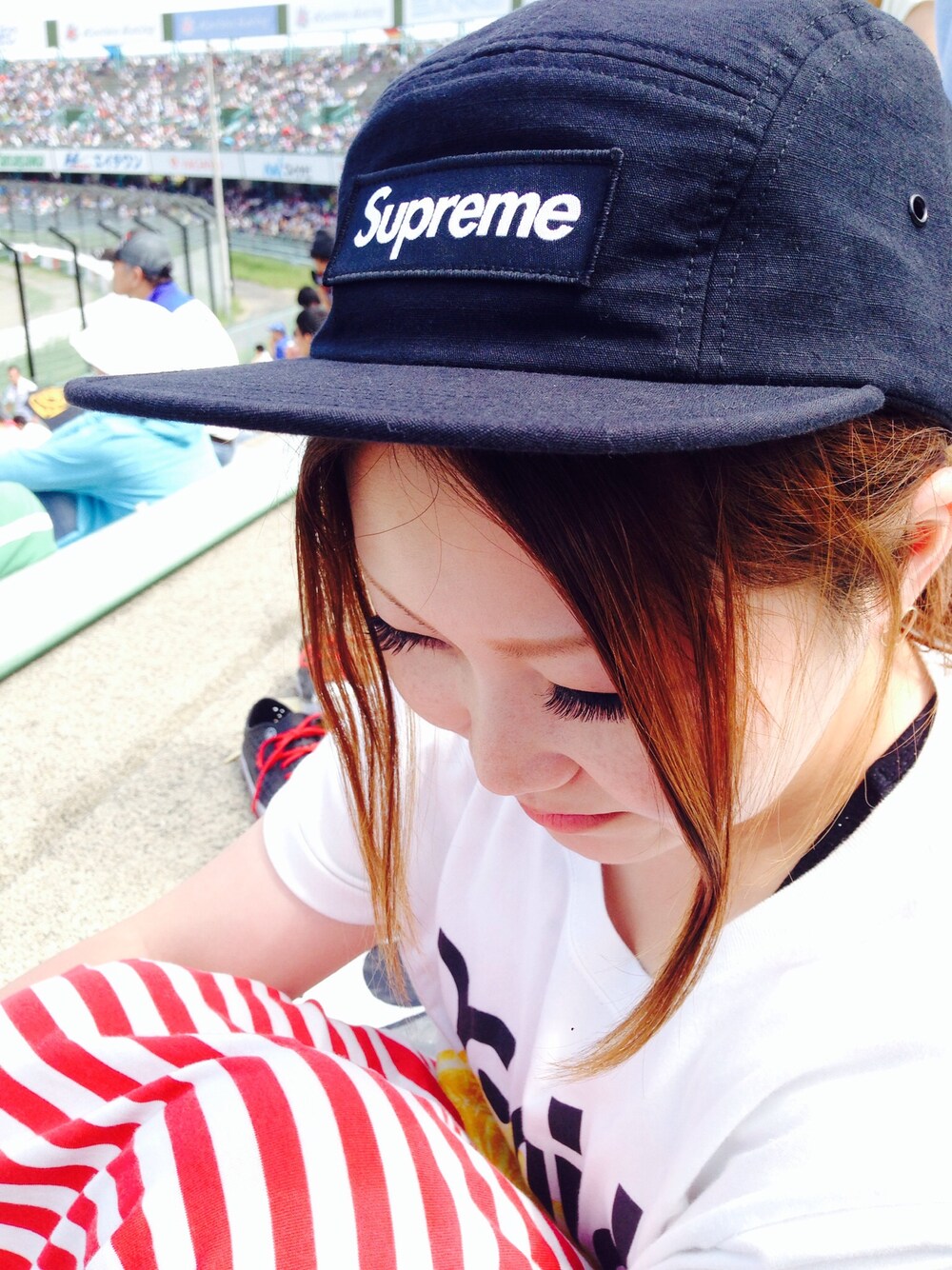 Supremeのキャップ初♡♡*\(^o^)/* この形わ絶対似合わないて思ってたけど、意外に…( ^ω^ )♡ 今日わキャップだけ♫