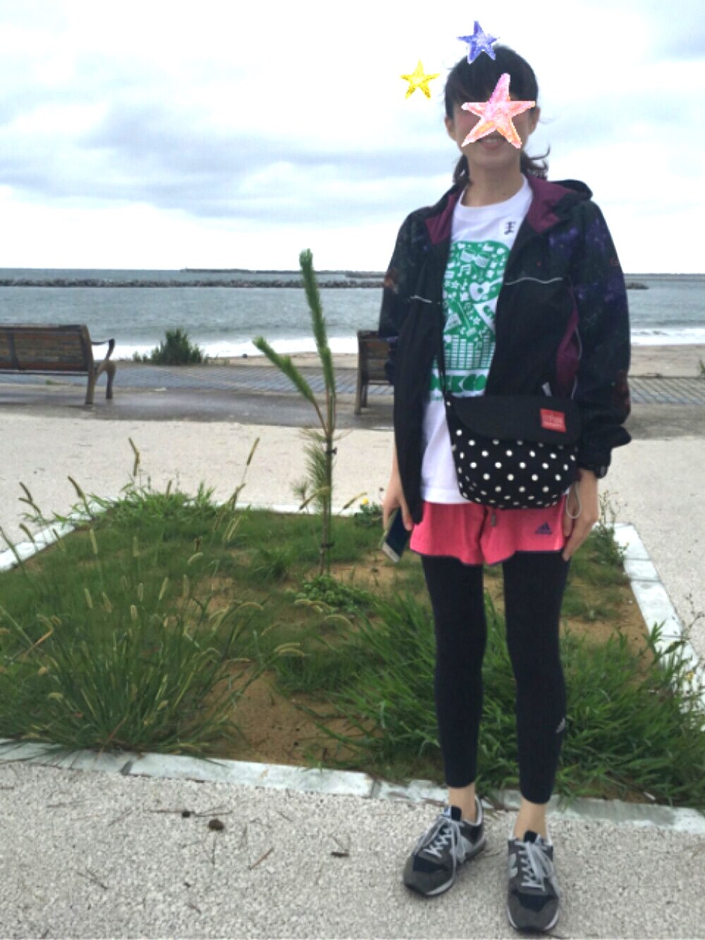 RockCorpsのボランティアをしてきました 突然秋になった日だったので、寒くない格好🍁 パーカーはPerfumeのファンクラブ限定✨ 宇宙柄でお気に入り♡ 下はランニング用で動きやすく∠( 'ω')/ 風で髪の毛すごいですが、思い出なのでupします 見てくださりありがとうございます🌞