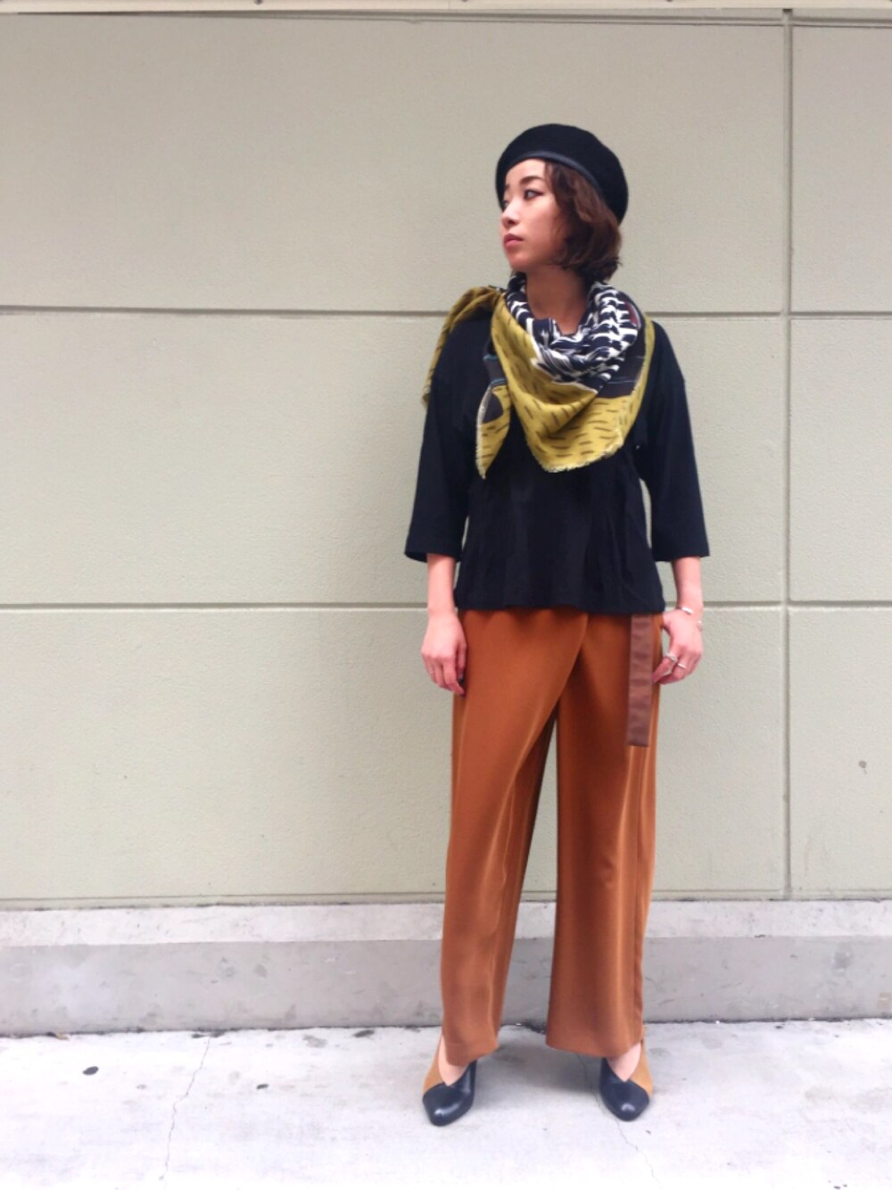 気持ちの良い秋晴れですね❤️😍 少し肌寒いときはストールが大活躍👍🙋❤️ YARN&COPPERのオリジナル柄がシンプルなスタイルにマッチします👌🍁