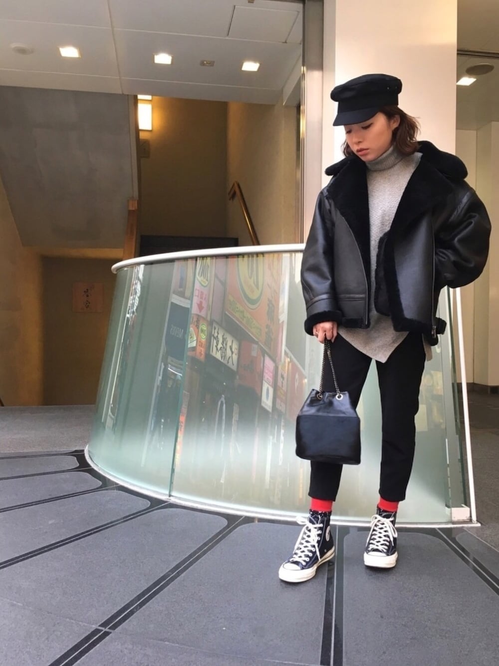 mayonse(AVIREX EC課)のムートンコート「Venit(ヴェニット) オーバーサイズムートンジャケット」を使ったコーディネート