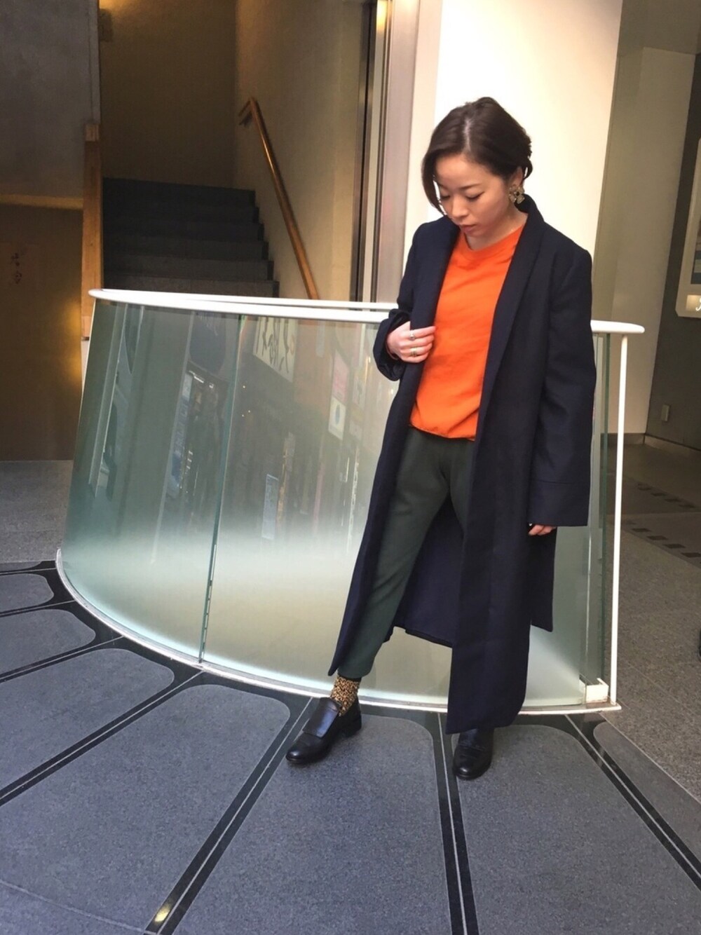 スーパーロングのコートはウールなのに軽くてとっても暖かいです♡😊😊 インナーは大人気のカラーブログニットで人参🥕コーディネートにしました🙋🎀❤️