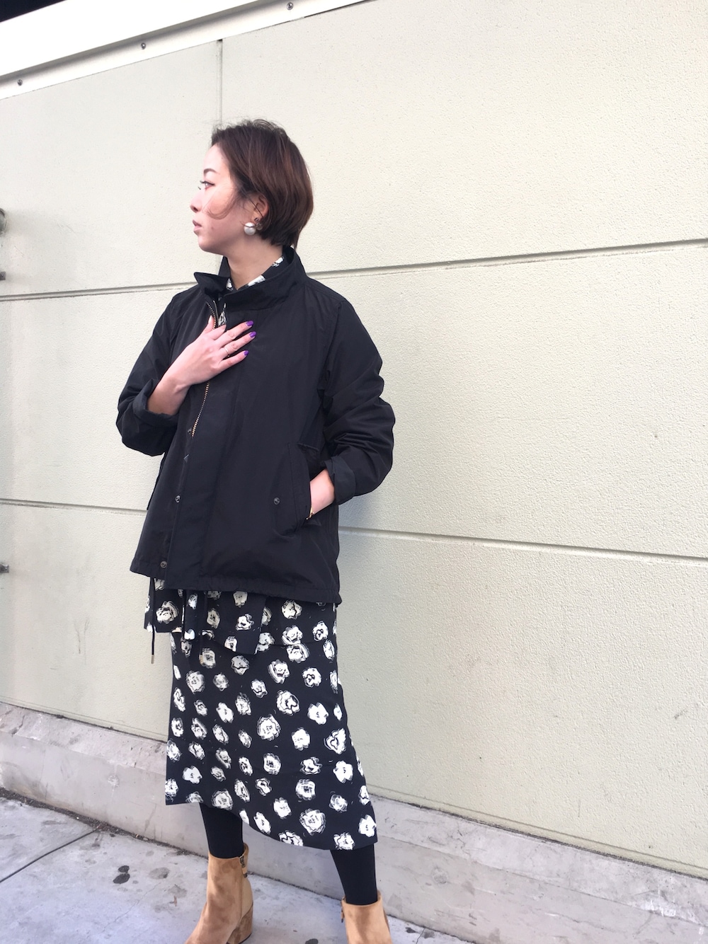 オリジナルの撥水タッサーモッズコートはフードを外すとこんなにスッキリとした印象に😍❤️🎉 全く違った印象で使えるのも◎🙆♀️