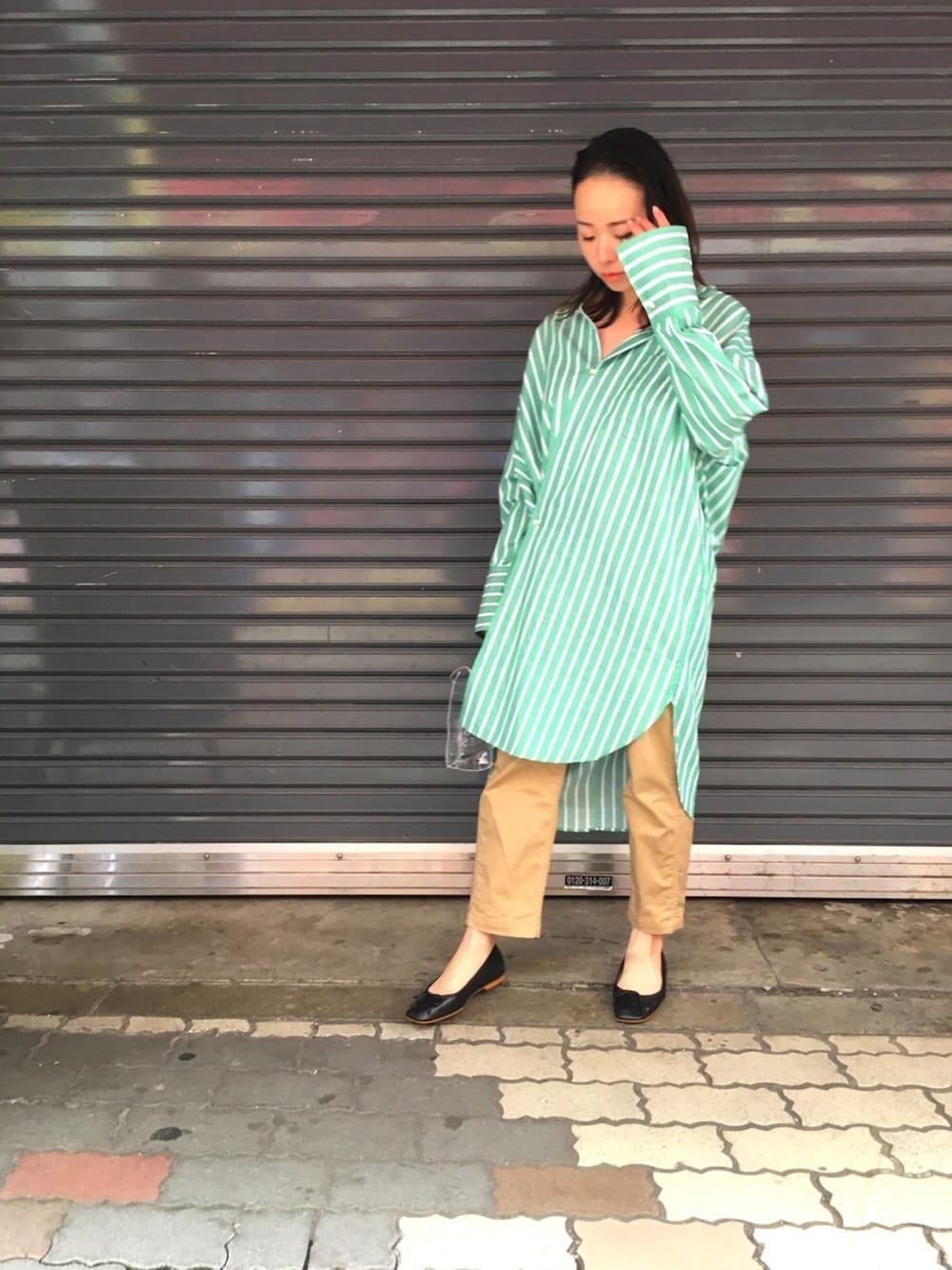 mayonse(AVIREX EC課)のワンピース「Uncut Bound(アンカットバウンド) 綿麻ストライプシャツワンピース」を使ったコーディネート