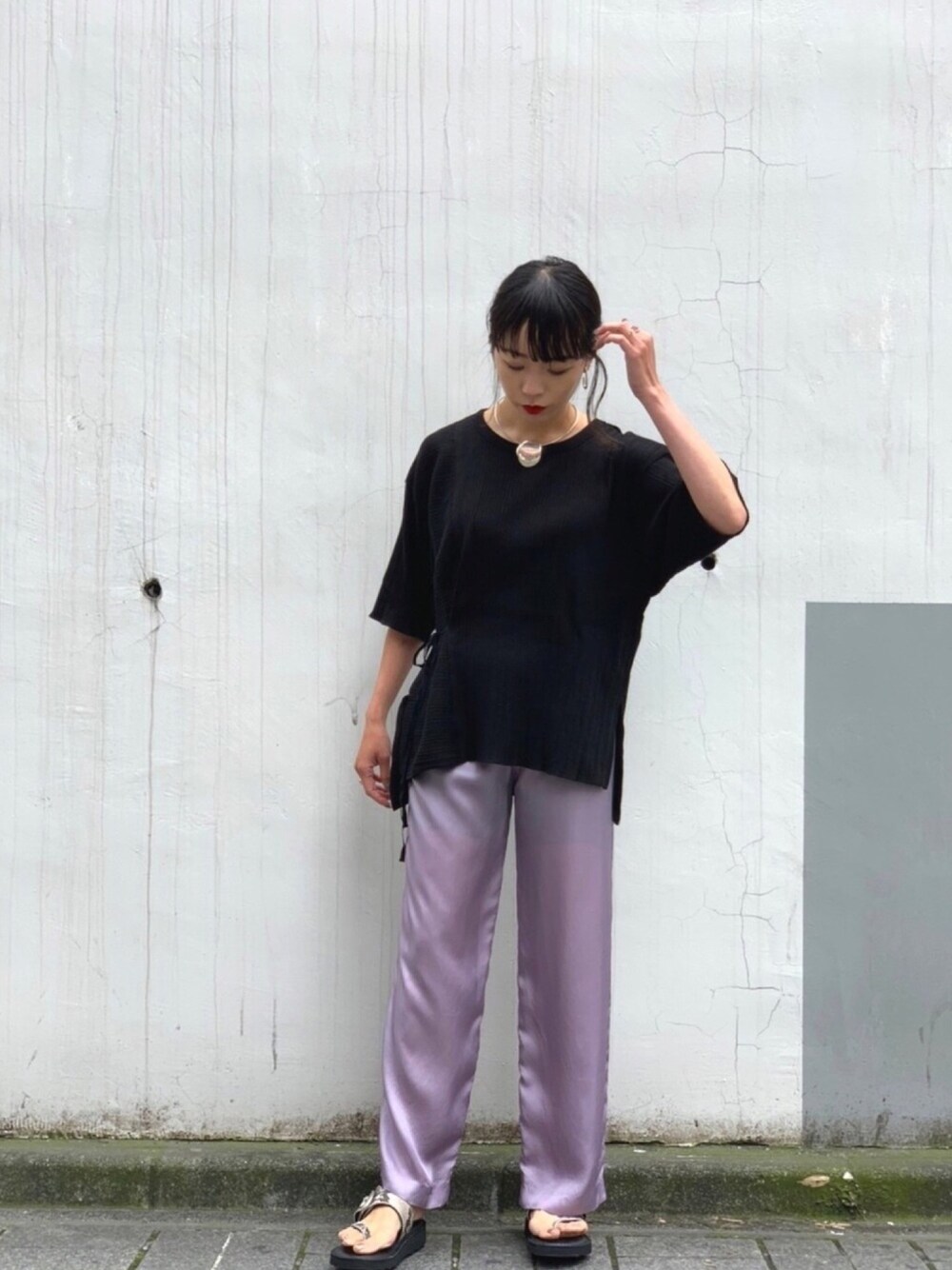 アシンメトリーな切り替えデザインとバッグの三角スリットが上品な肌見せを演出‼︎ さらに右の脇の紐を結ぶことで、ウエストをすっきり見せることができるのも魅力的なポイントです★★