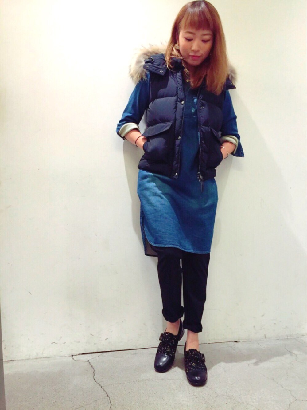 mayonse(AVIREX EC課)のワンピース「Rinajour(リナジュール) インディゴワンピース」を使ったコーディネート