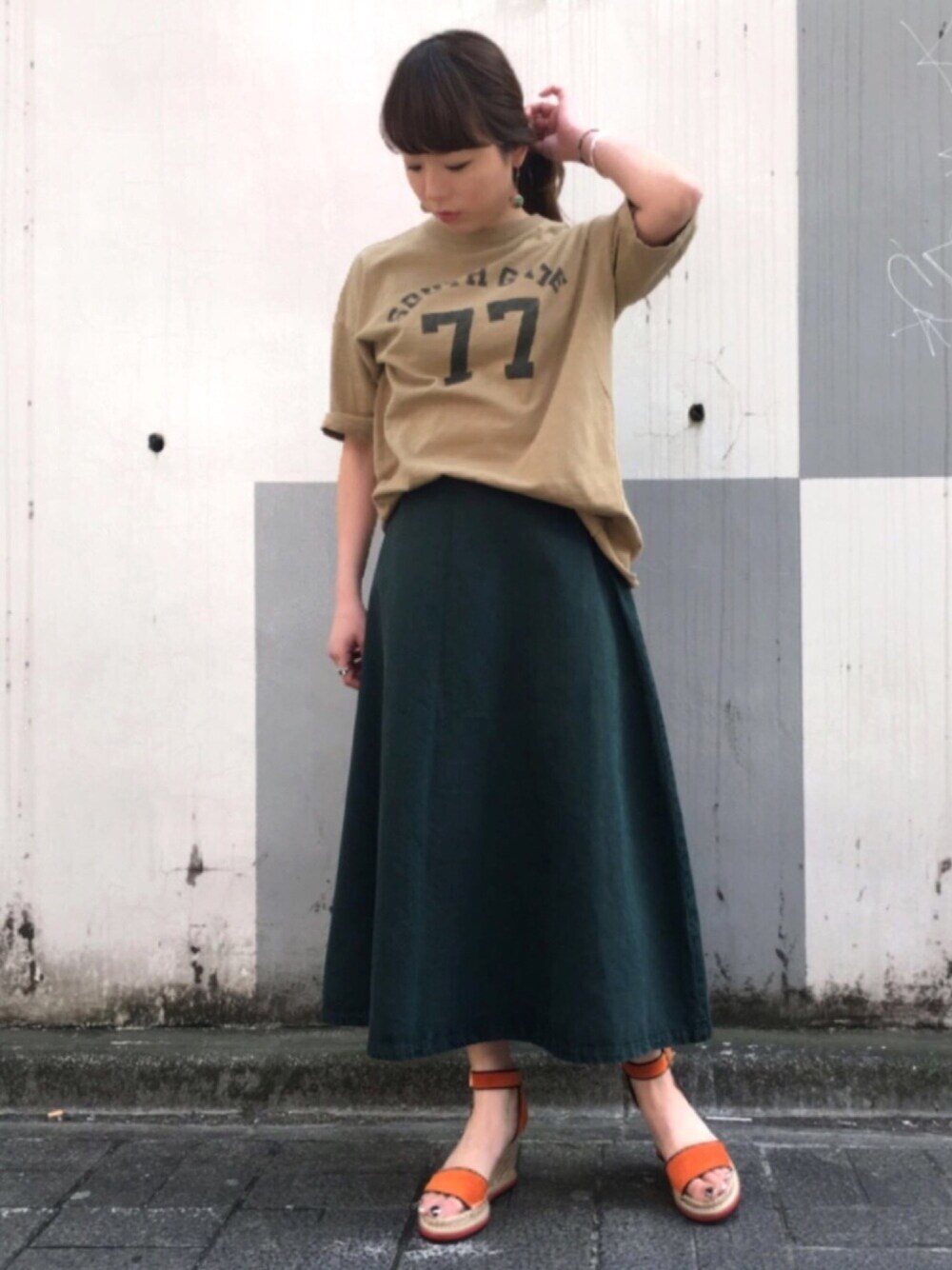 今年はスカートがとってもきになるシーズンです😍😍❤️👸🌈 WAVENのこちらのスカートは張り感もあるのにフレアになるこの感じがたまらなく可愛いです💓 アースカラーにオレンジ🍊でアクセントをつけて見ました❤️
