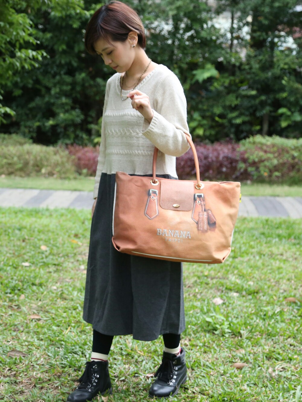 以前一直害怕150公分的我穿上過膝裙會很可怕!但是試過之後發現反而有增高的效果喔! 包包是嬌蕉包的新款~~楓糖紅閨密包~~很輕盈,顏色也很百搭!