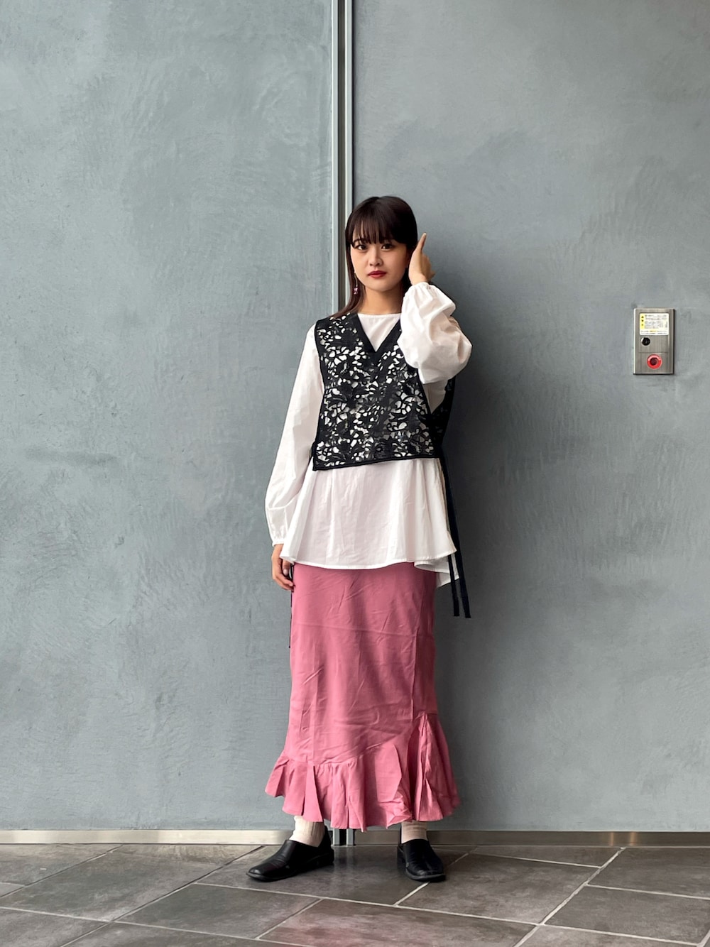 初投稿です^^ ピンクのスカートで春らしさを出しました🎶