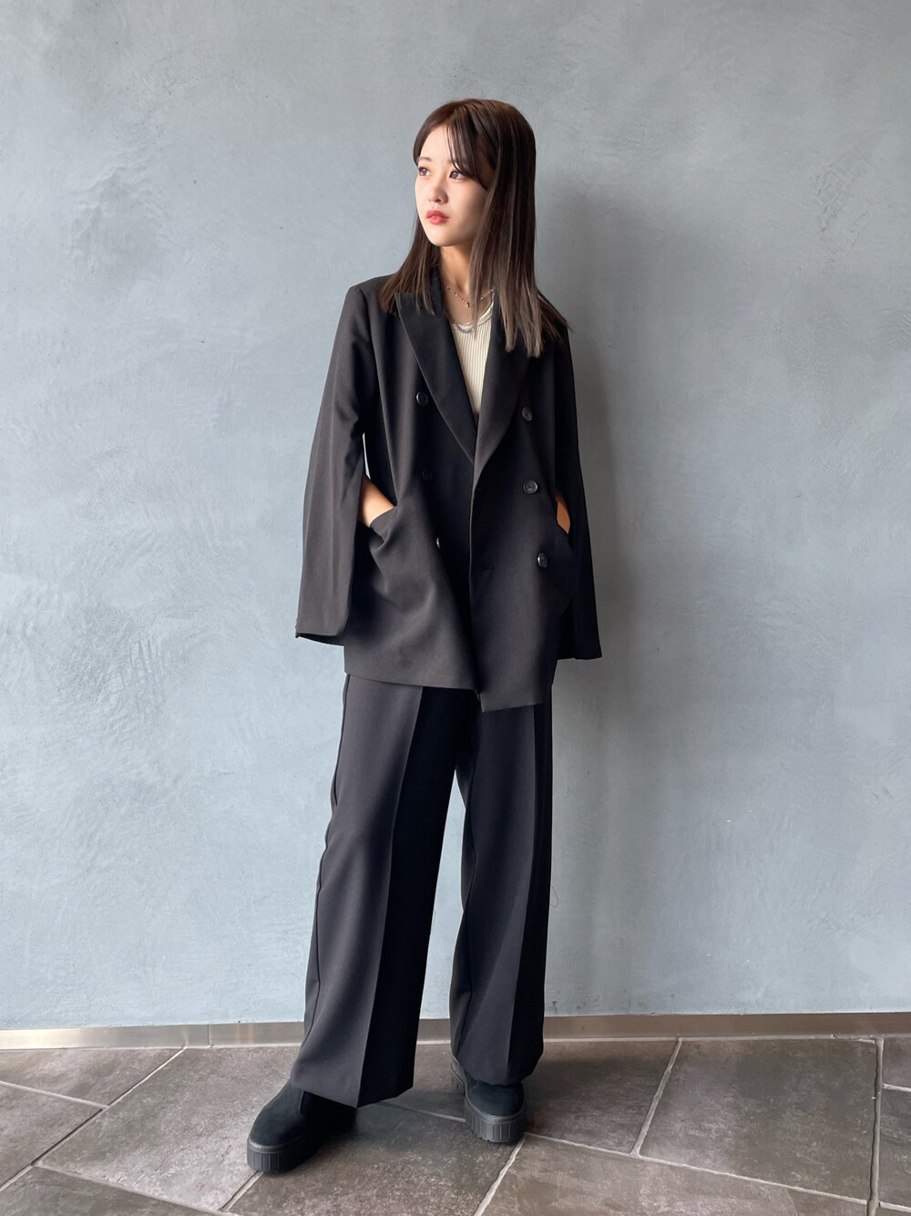 may(Lui's EC)のその他パンツ「【カタログ掲載アイテム】ツイルワイドパンツ(セットアップ対応)」を使ったコーディネート