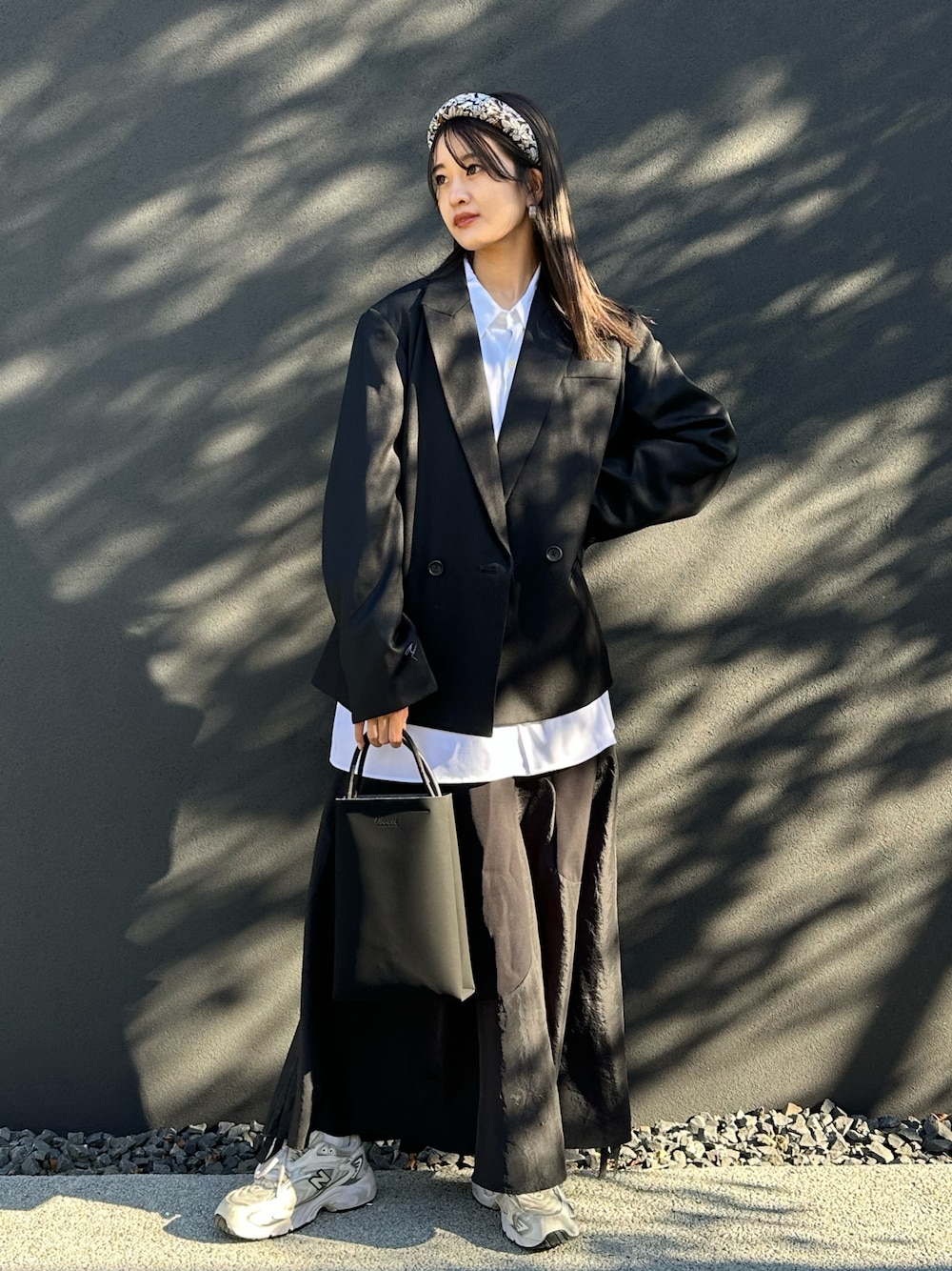 may(Lui's EC)のテーラードジャケット「【2×2セットアップシリーズ】ベネシャンピークドラペルショートジャケット (セットアップ対応)」を使ったコーディネート