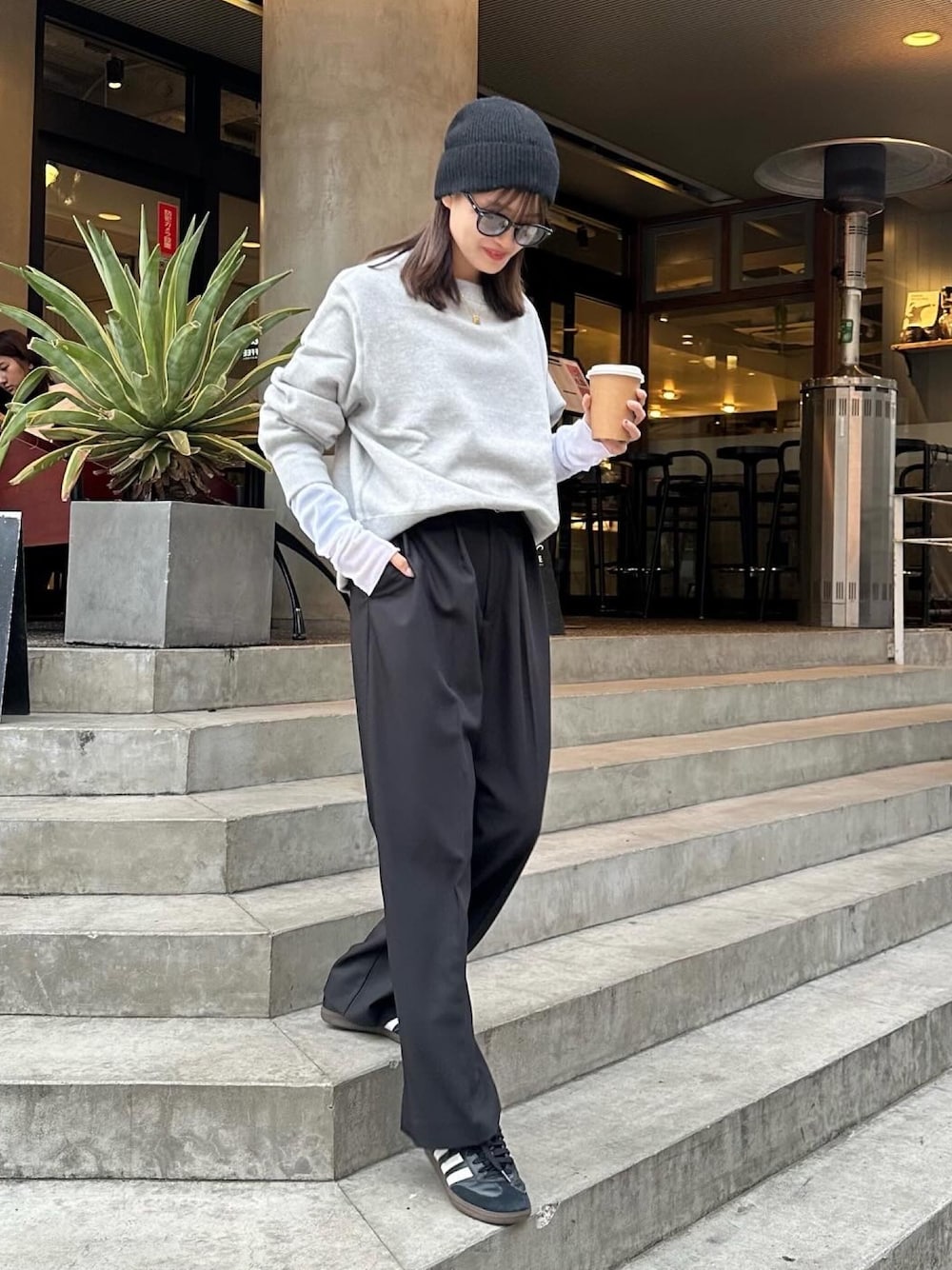 164cm / 骨格ウェーブ ◾︎クロップドショート丈スウェット / Sサイズ リアバイしたクロップドスウェットです! 身長が低い方や女性の方でもちょうど良いゆったりさと短丈による脚長効果で使い回し抜群◎ ◼︎マーベルトデザインワイドパンツ / Fサイズ着用 ウエストにデザインのある、シンプルだけどコーデ映えするパンツ! スラットした下に落ちるシルエットなので、脚も綺麗に見せてくれます◎ オールシーズン使えて、着回しも効く万能アイテムです! ◾︎ベロアメッシュトップス ベロアメッシュ素材のシンプルなトップス 1枚でも上品に着ていただけるアイテムなのですが インナーで袖から少し出すのもオシャレな1枚。 ベロアメッシュ素材はカジュアルすぎないので、 大人っぽく着用できます◎
