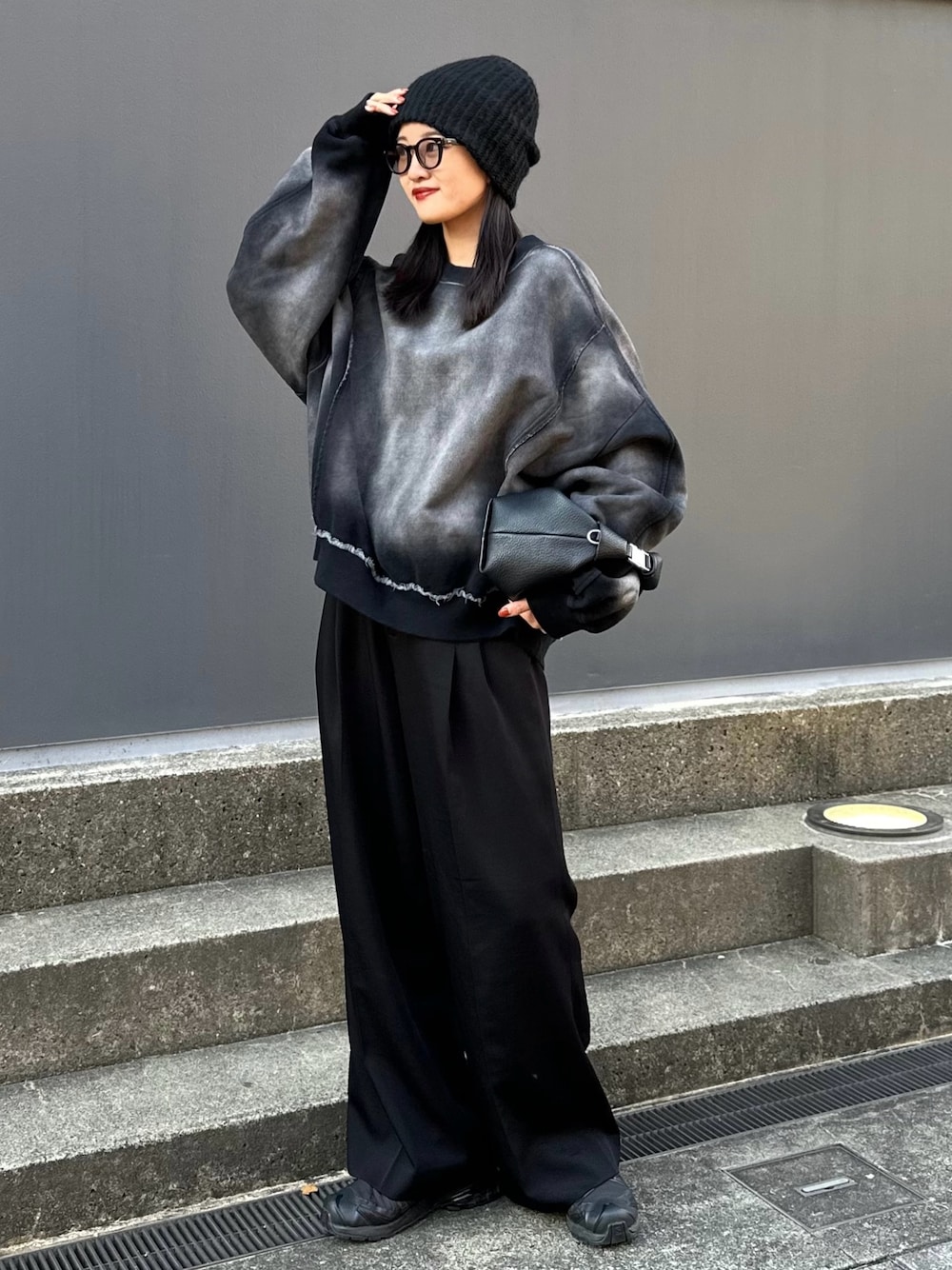 164cm / 骨格ウェーブ ◾︎ HARD BLEACH SWEAT / Fサイズ着用 加工感が可愛くて、存在感ハンパないスウェット。 これは一枚でカッコよく着こなせること間違いなし!! デザインがかなり効いてるトップスなので、シンプルなワイドスラックスはもちろんデニムや、ミリタリーパンツと合わせたコーデもオススメ! 裏起毛だからしっかり暖かくて ボリューム感もあるのでこれからの秋冬にぴったりな1着です! ◼︎ 2タックベーシックワイドパンツ / Fサイズ着用 どんなスタイルにも合わせやすく、 絶対一本は持っておきたいワイドパンツ。 下に向かって落ちるシルエットが超キレイで、 履くだけでスタイルアップ確定◎ 生地感もしっかりめなので、 キレイめ/大人っぽいコーデが好きな方には 特にオススメのパンツです!