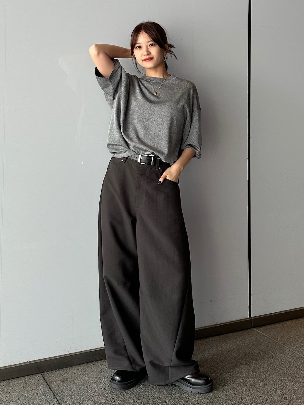 ◾︎ カーブスラックス / Sサイズ着用 スラックスなのにカーブデザインの効いたアイテム🙆♀️ カーブシルエットのパンツはとにかく足が長く見えるのと、落ち感が綺麗なのでオシャレみえしやすいパンツです!! 腰周りをカバーしてくれます!◎ タイトにもオーバーなトップスにも合わせやすいのが嬉しいポイントです!