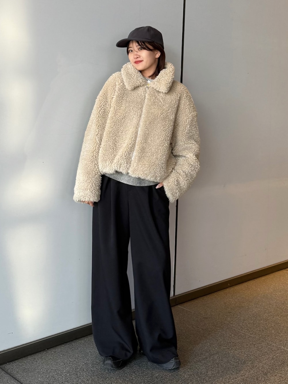 ◾︎ コード付きボアブルゾン / Fサイズ着用 着るだけで超存在感が出るブルゾン♡♡ ボリュームはあるけど、 着膨れ感は出ない優秀アウター🩶 これは間違いなくモテアウターすぎます〜! オシャレに、可愛く、暖かいブルゾンここにありデス! ◼︎ 【mi-企画】タックワイドパンツ / Mサイズ着用 履くだけでお洒落に決まるタックワイドパンツ。 深めなタックデザインで、シンプルながらも存在感のあるデザインに♡ 全骨格が綺麗に履けて、 後ろがゴムだから楽ちんなのに、 腰回りはスッキリ華奢見えしちゃう最強スラックス。 ハイウエスト設定なのでスタイルアップ効果も抜群◎ オールシーズンいけちゃいます!